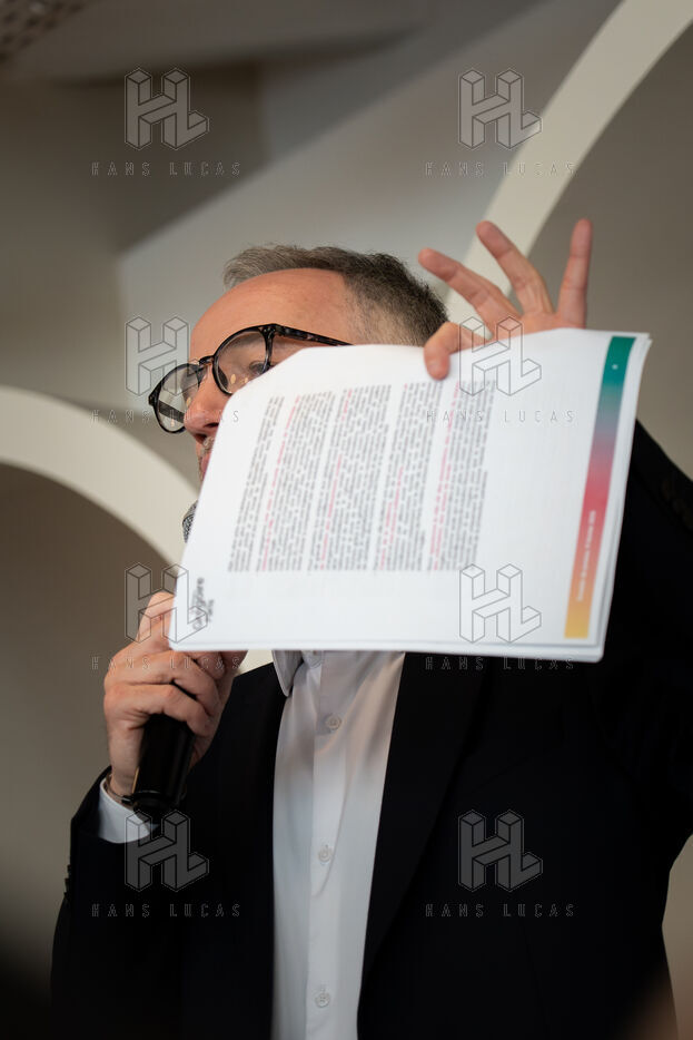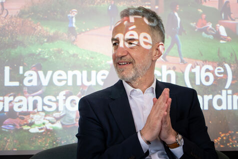 Emmanuel Grégoire, candidat de la "Gauche Unie" sauf LFI pour les élections municipales 2026 à la Mairie de Paris présente son programme sur les projets de transformations écologiques dans la capitale.
