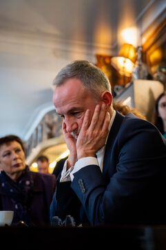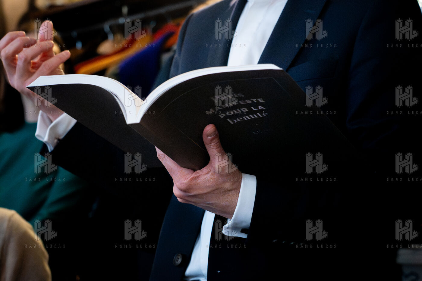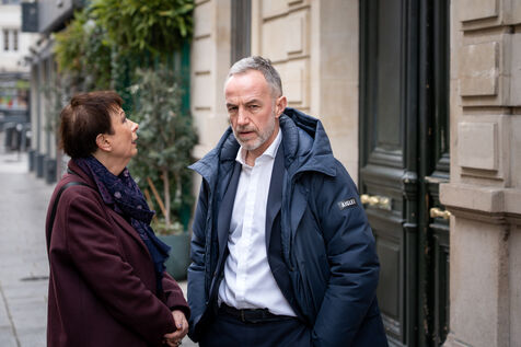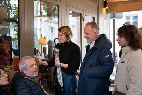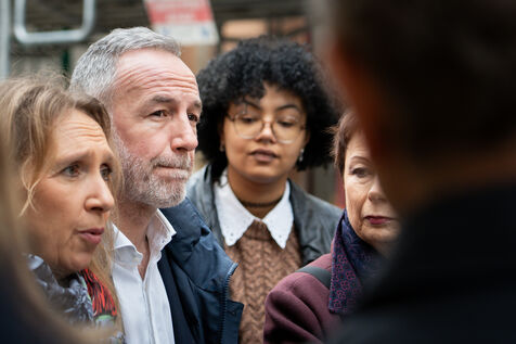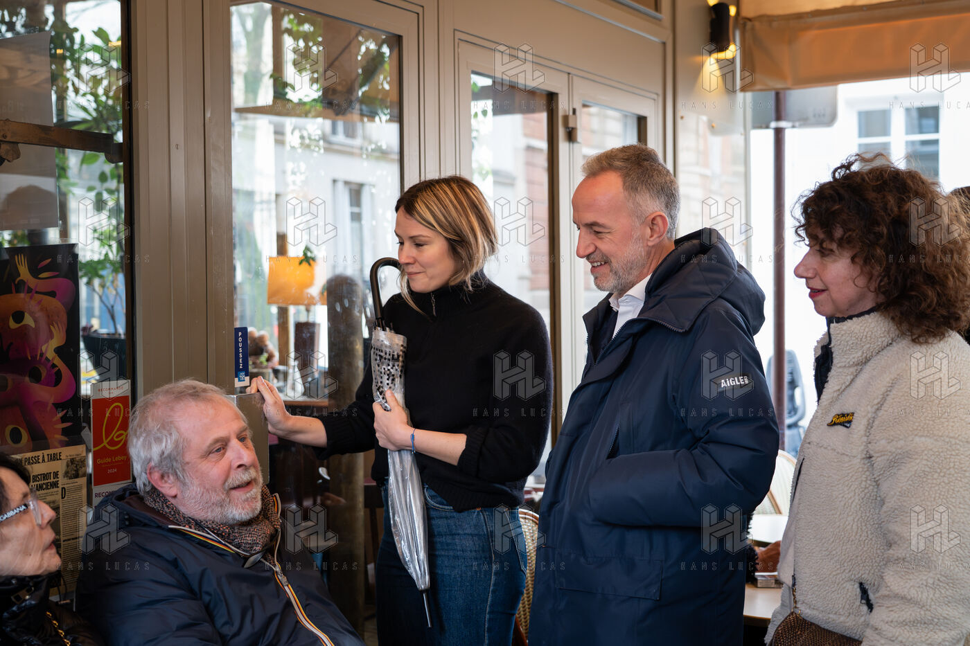Emmanuel Grégoire, candidat de la "Gauche Unie" à la mairie de Paris pour les élections municipales 2026 déambule rue Chaptal dans le 9ème arrondissement avant de présenter son programme sur l'esthétisme et "Le droit à la beauté de Paris" au café L'Annexe.