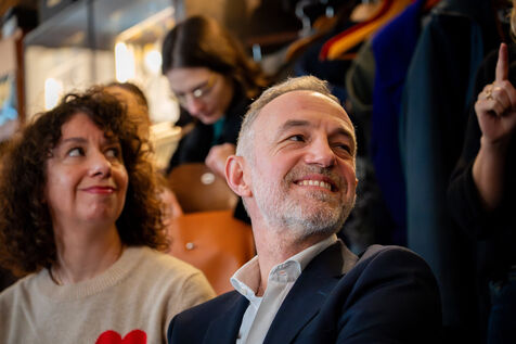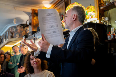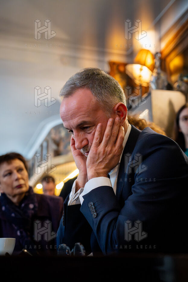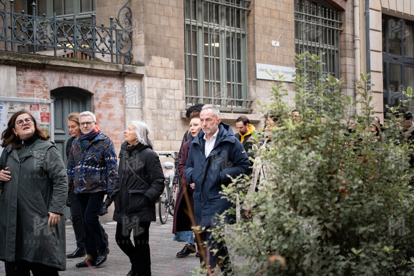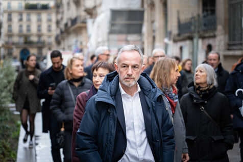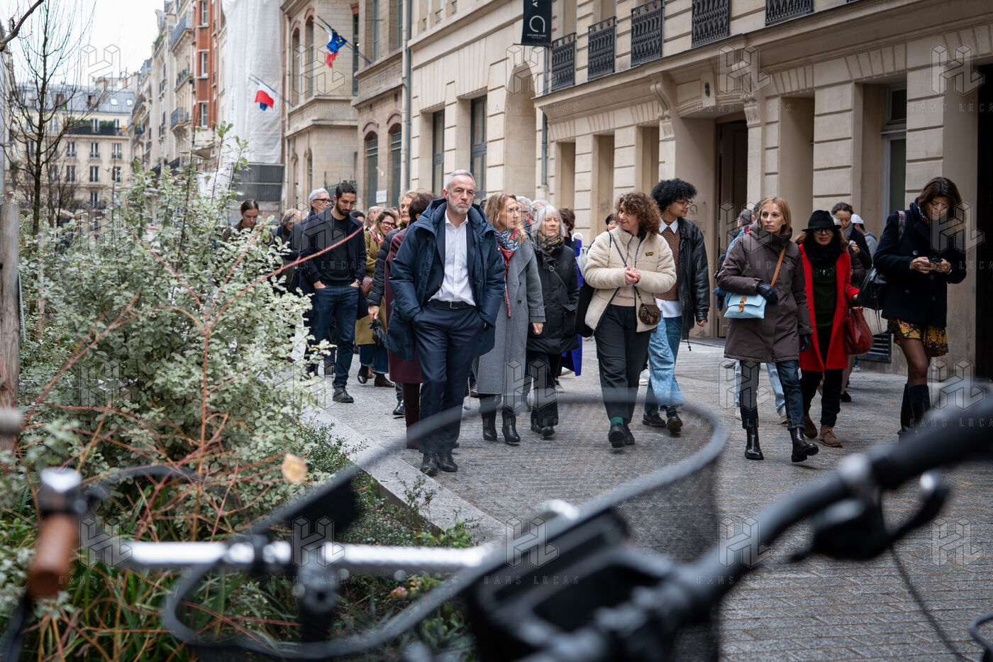 Emmanuel Gregoire, candidate for the United Left in the Paris mayoral election for the 2026 municipal elections, strolls down Rue Chaptal in the 9th arrondissement before presenting his program on aesthetics and “The right to the beauty of Paris” at the L Annexe cafe.