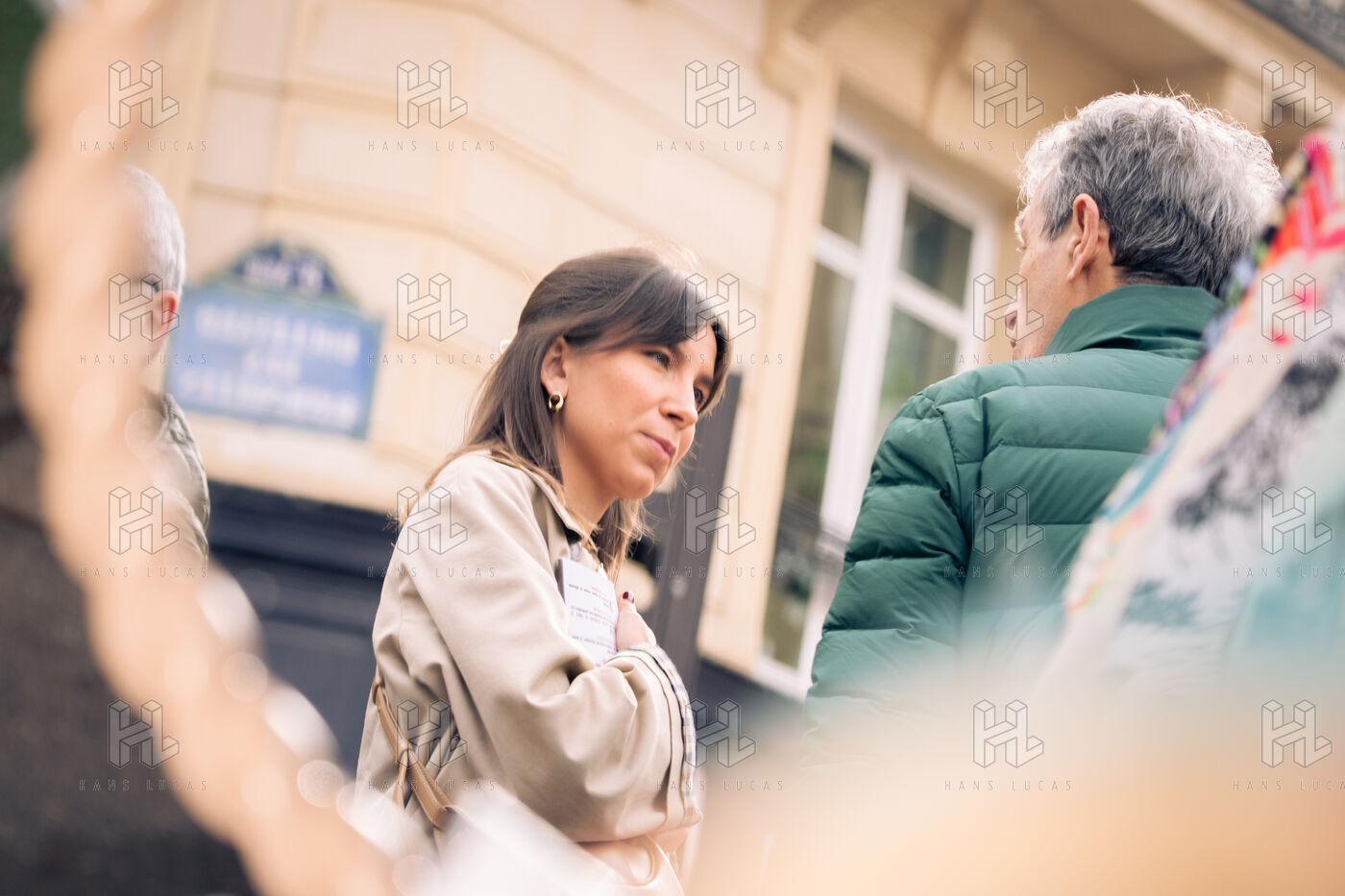 Emmanuel Grégoire, candidate for the “Gauche Unie” party, walking around the Batignolles market in the 17th arrondissement as part of the campaign for the 2026 municipal elections, accompanied by Yannick Jadot, senator for “Les Écologistes,” and Thea Fourdrinier, from the Place Publique party and candidate for mayor of the 8th arrondissement.