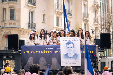 Gathering of the Nemesis Collective for International Women's Rights Day, Place Jean Lorrain in the 16th arrondissement of Paris.
