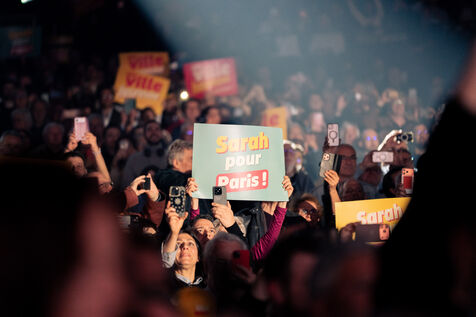 Dernier meeting de campagne de Sarah Knafo, candidate à la mairie de Paris avant le premier tour des élections municipales 2026 dimanche 15 Mars au Dôme de Paris.