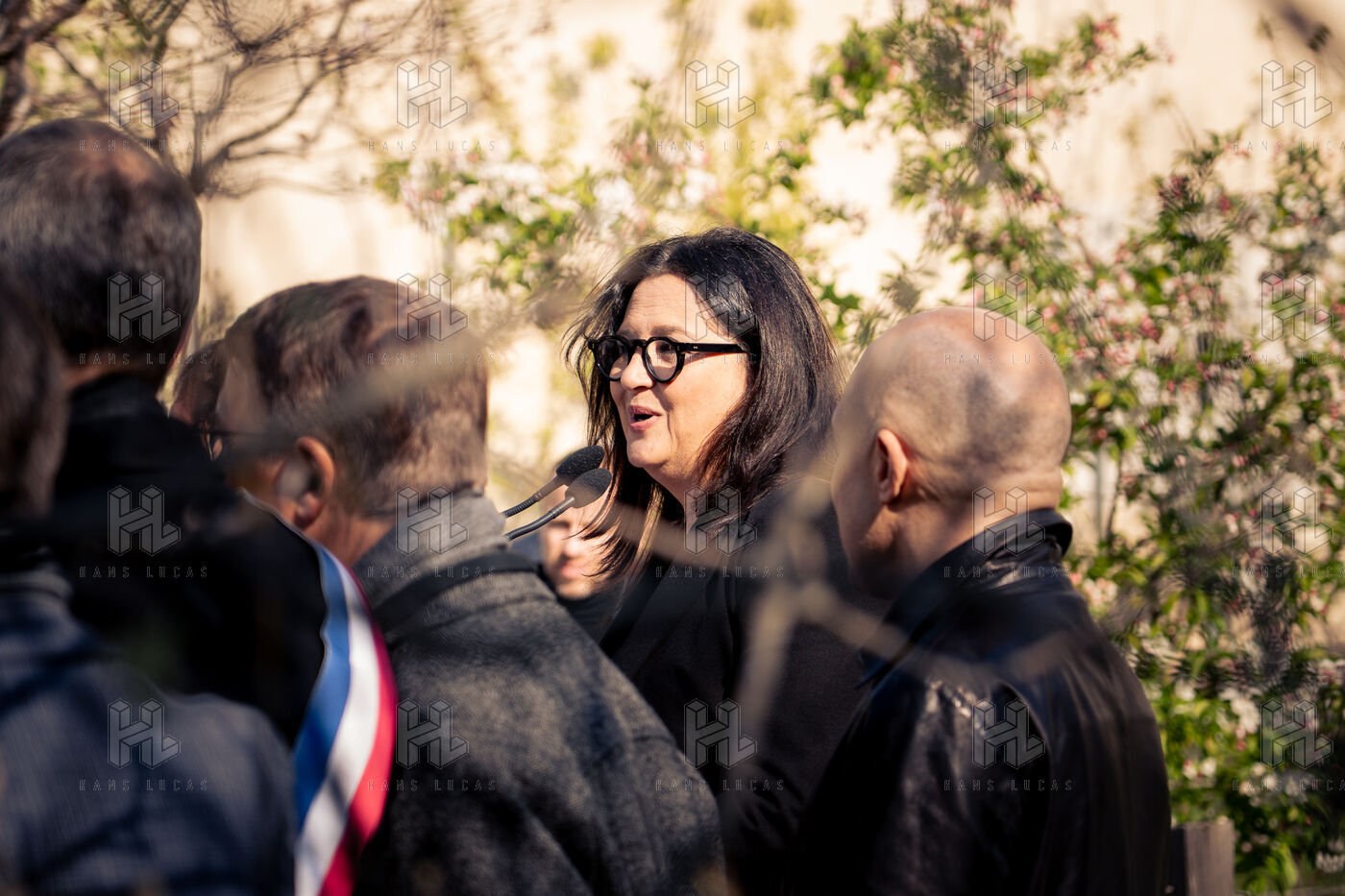 Inauguration de l'allée Gil Taïeb, fondateur du festival "Onze Bouge" et ancien vice president du CRIF, dans le jardin Truillot dans le 11ème arrondissement en présence de la Maire de Paris, Anne Hidalgo et de son adjointe et veuve Karen Taïeb.