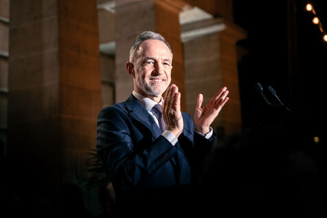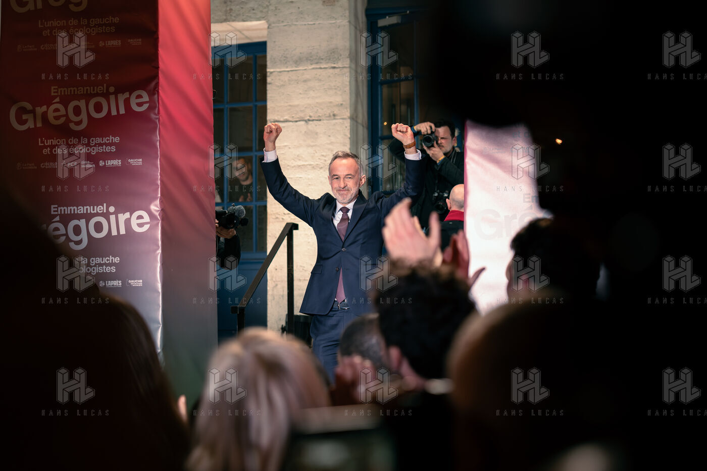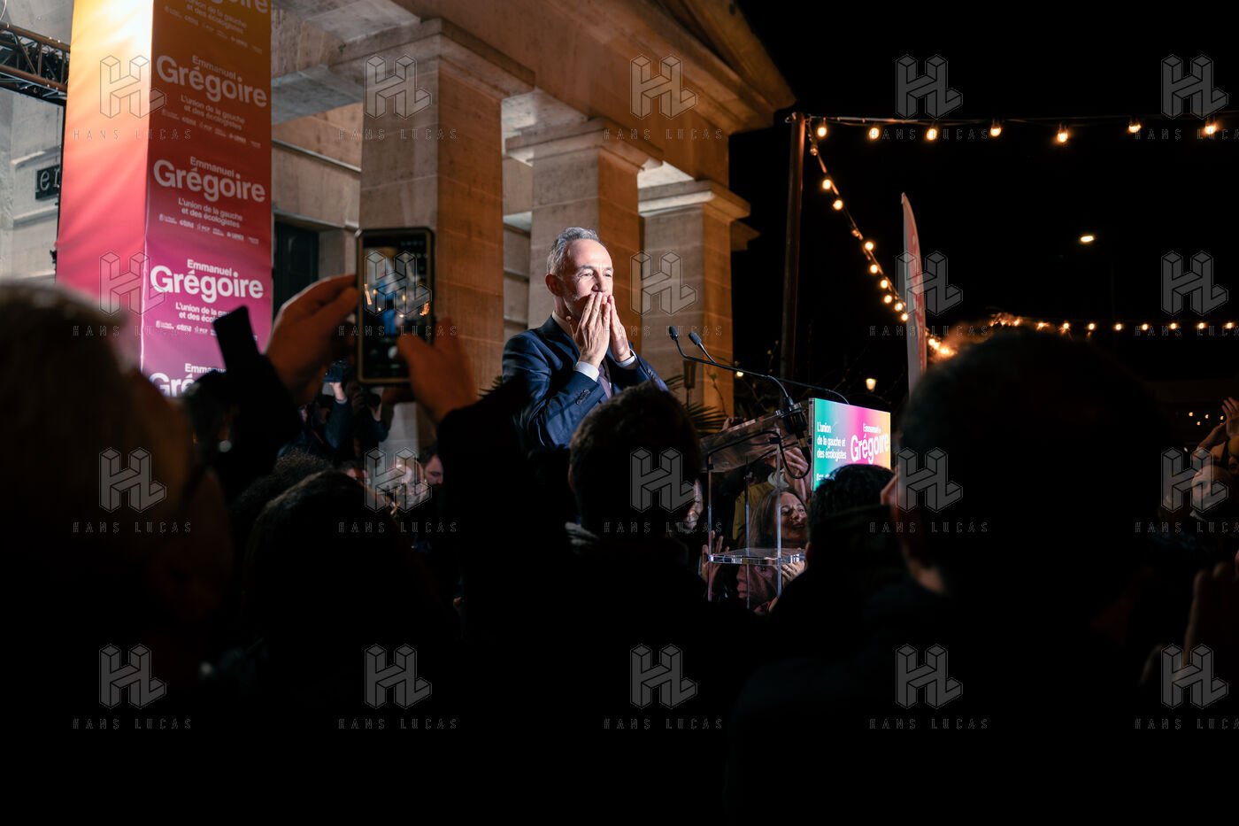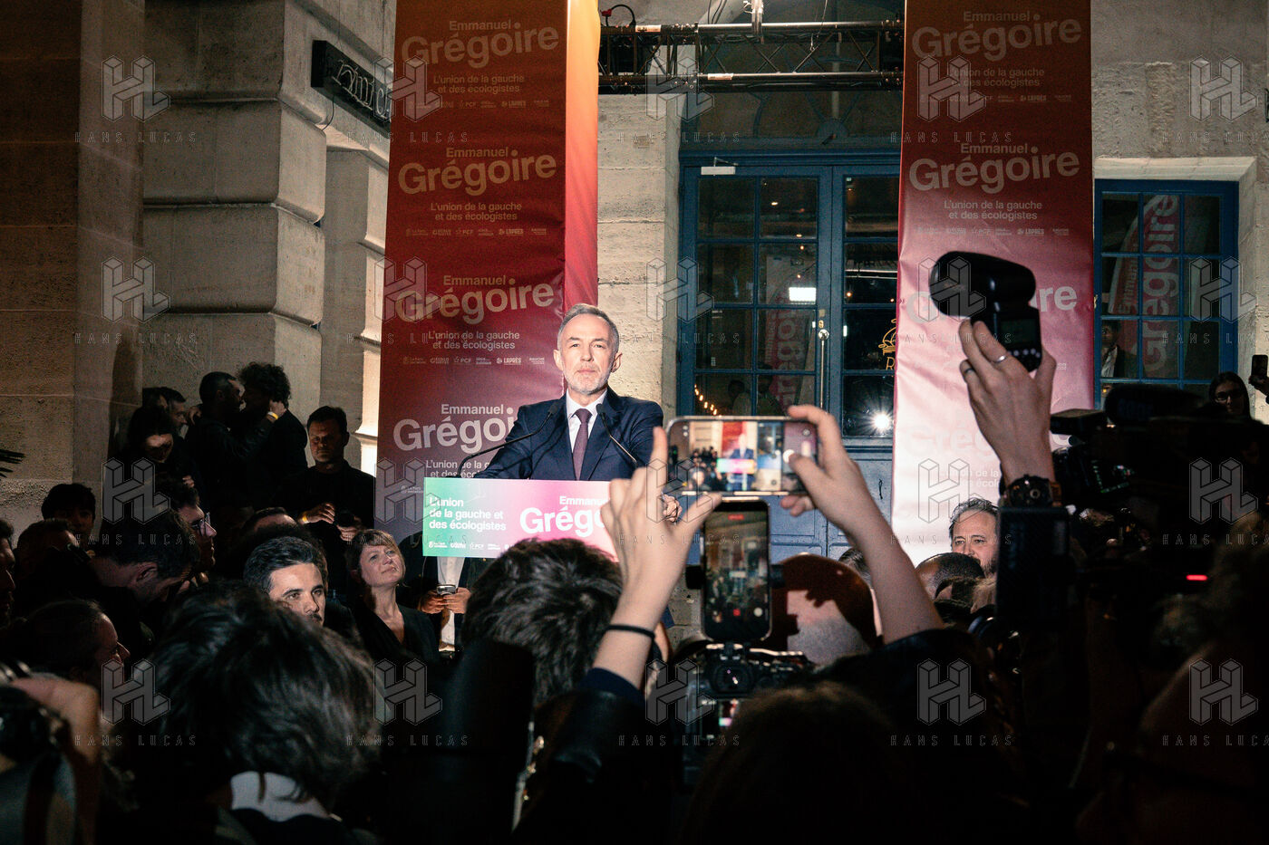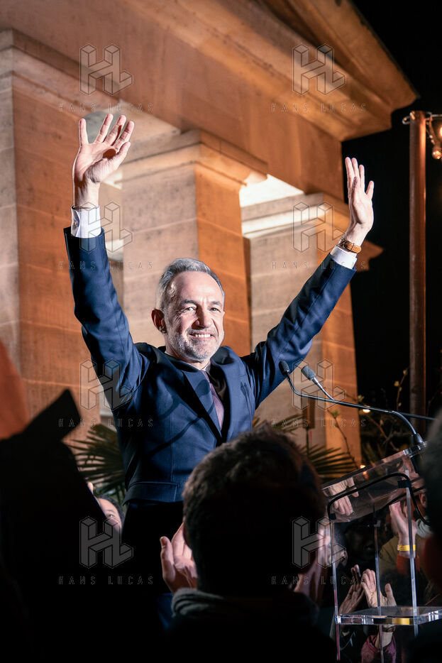 Discours de victoire de Emmanuel Grégoire, candidat de la "Gauche Unie" et des Écologistes à Paris à l'issue du second tour des élections municipales à la Rotonde Stalingrad.