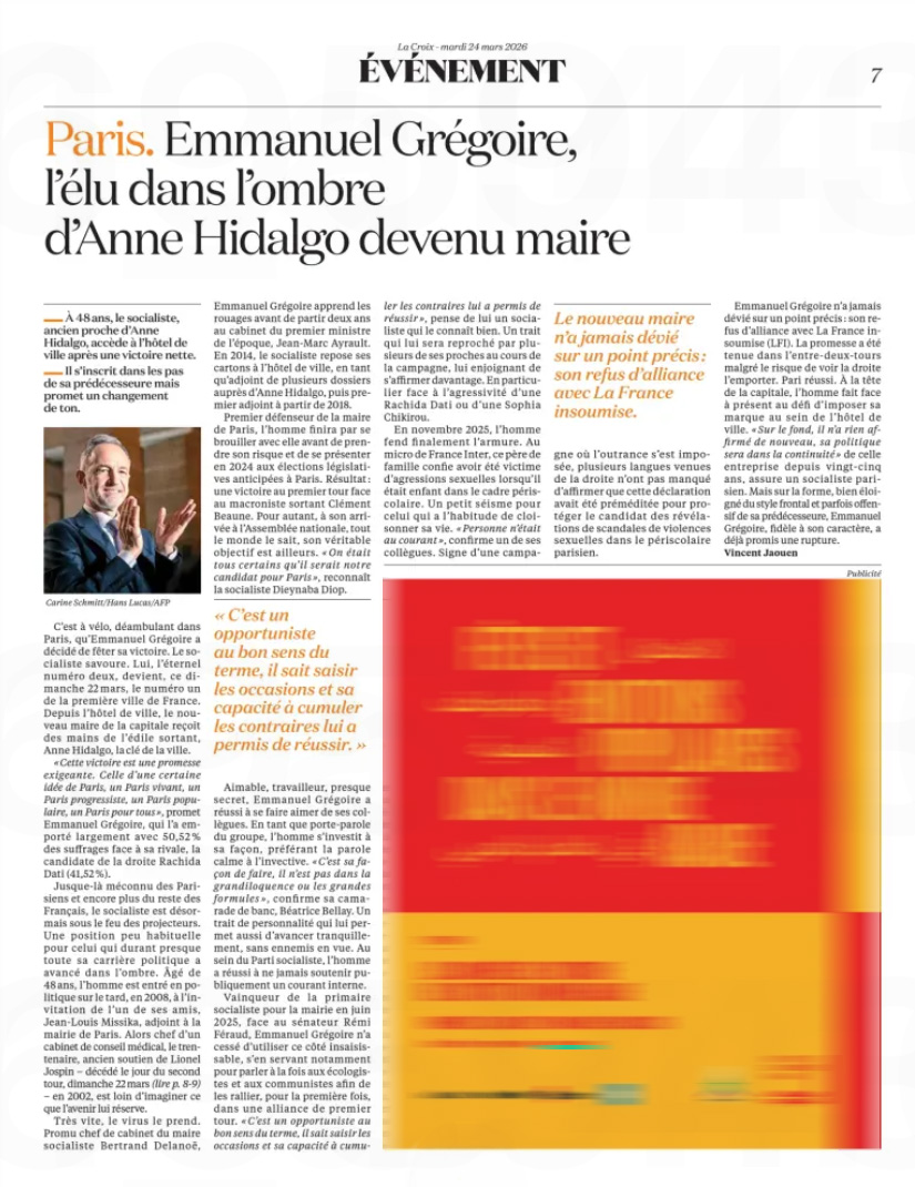 Carine Schmitt Publications Séries / Archive Culture — Paris — Politique — Société — Spiritualité — Sport Sélection de séries LA CROIX TÊTU HUFFPOST L'HUMANITÉ La tribune Libération Libération LA TRIBUNE DU DIMANCHE Politis Nouvel Obs Les Échos MEDIAPART Médiapart Ouest France JD NEWS L'humanité Le Figaro Nouvel Obs L'histoire - Novembre 2025 Le Parisien dimanche