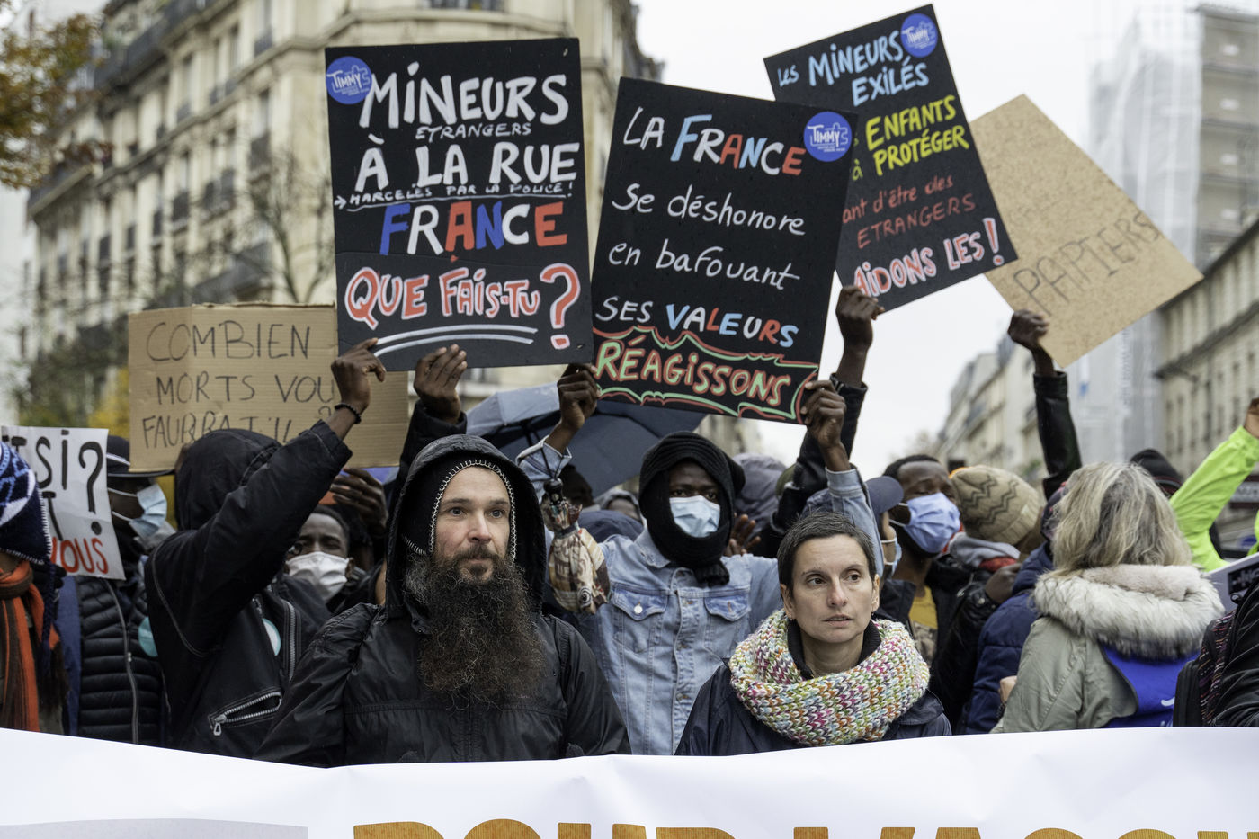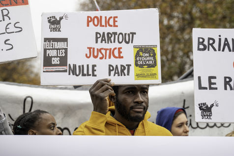 Manifestation contre les violences de l'état envers les personnes exilées de la place de la bataille de Stalingrad à République.