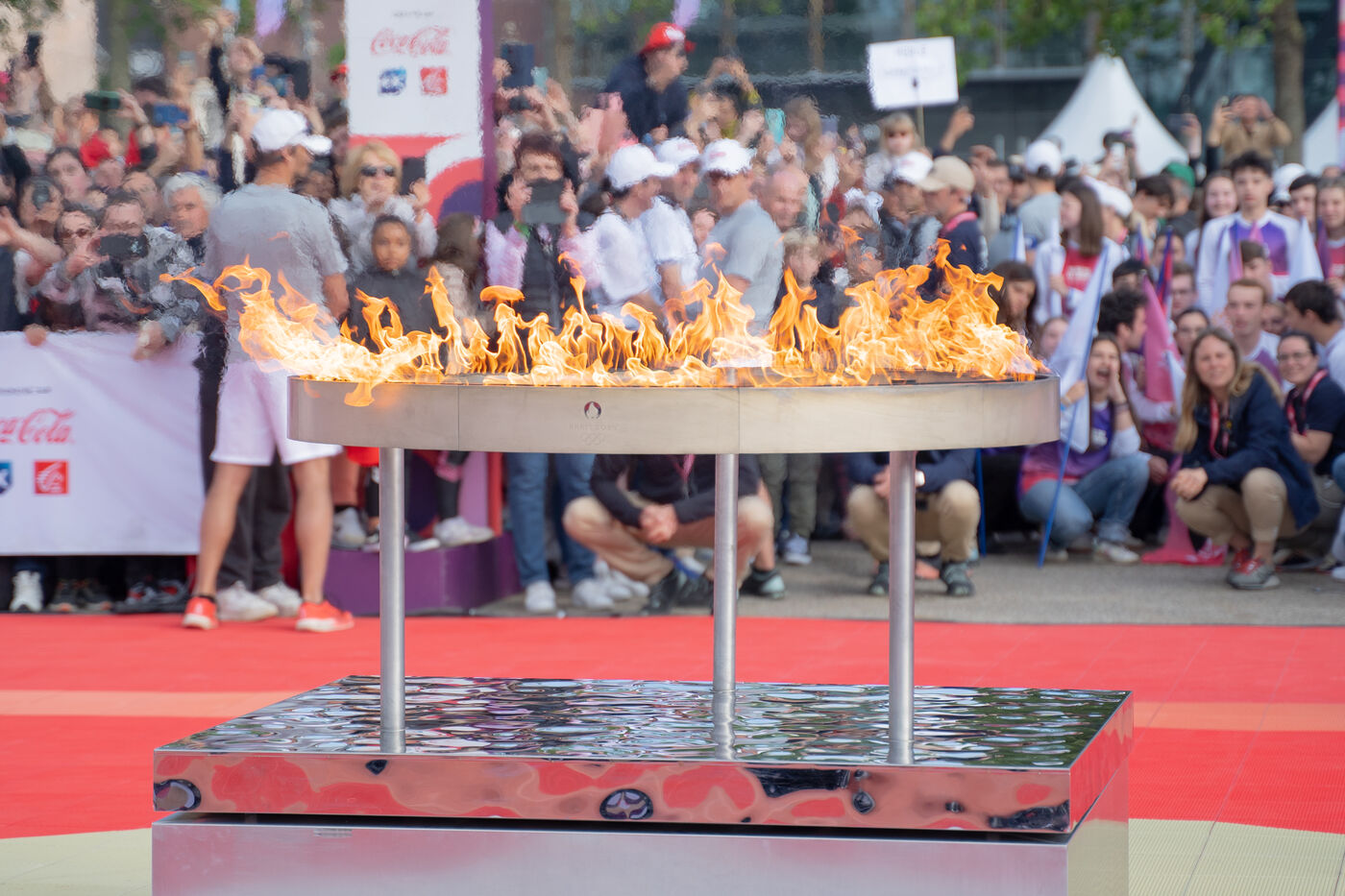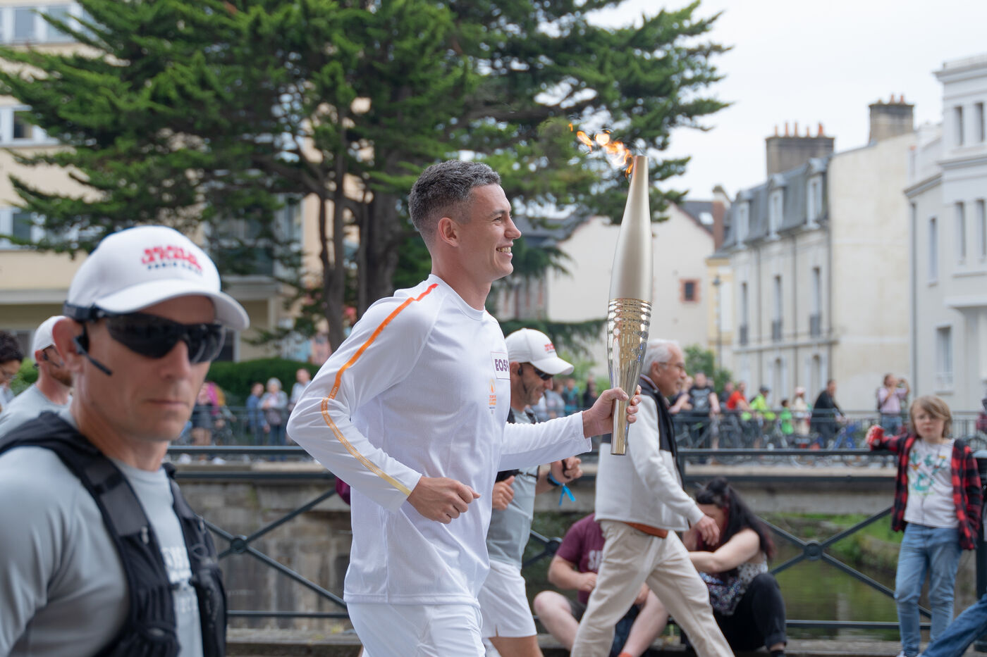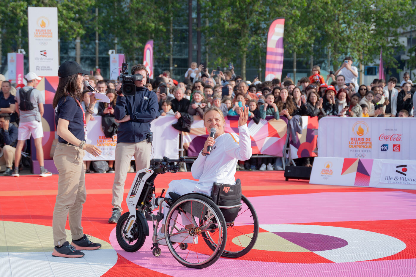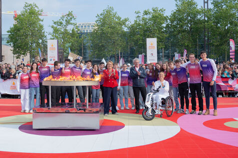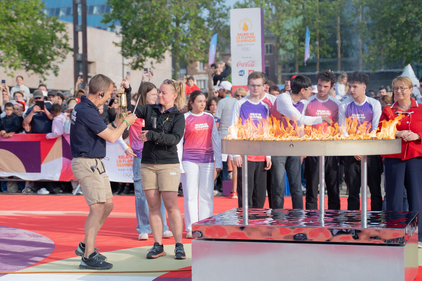 Relais de la flamme Olympique à Rennes avec l'allumage du chaudron Esplande Charles de Gaulle.