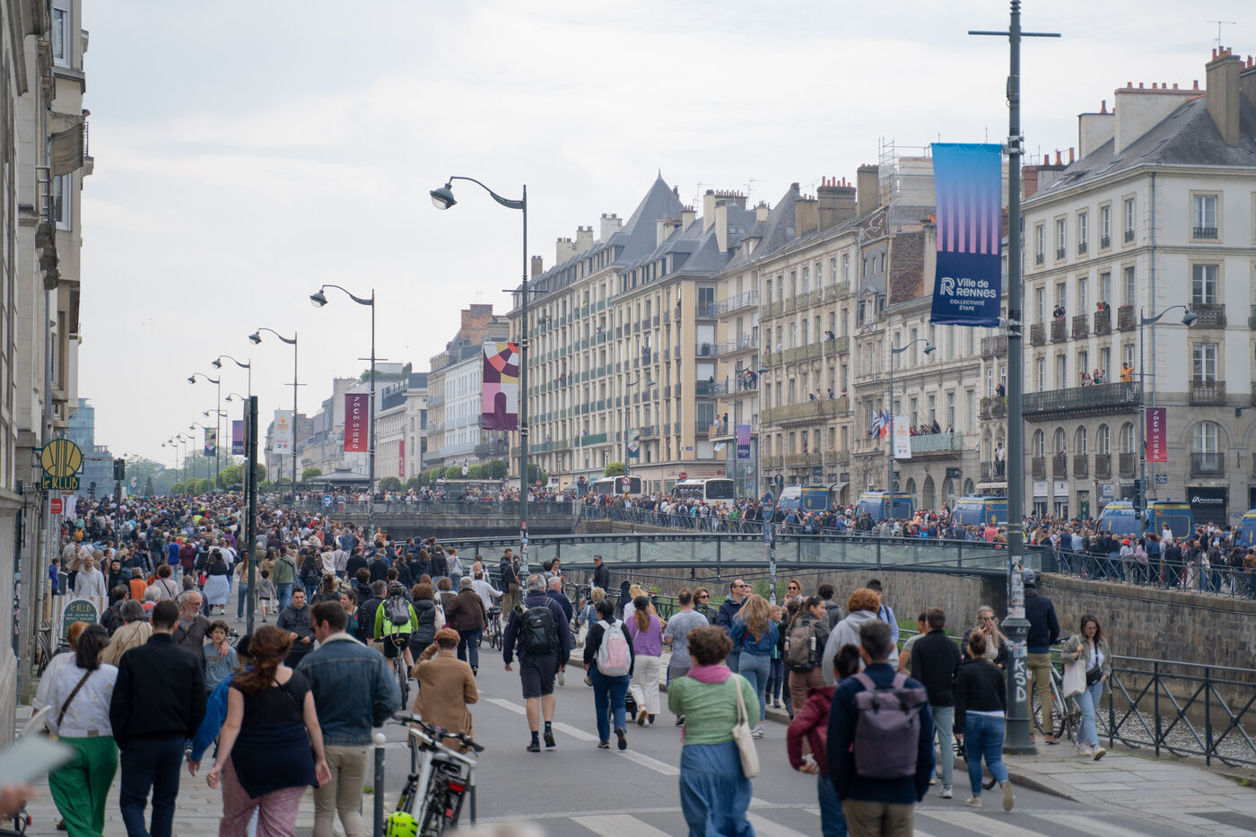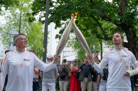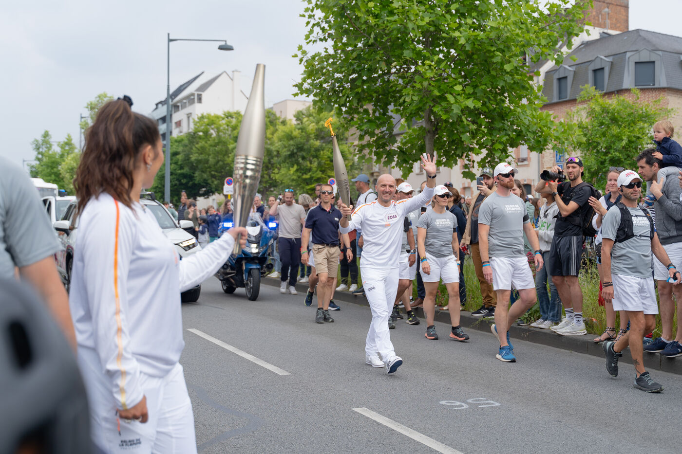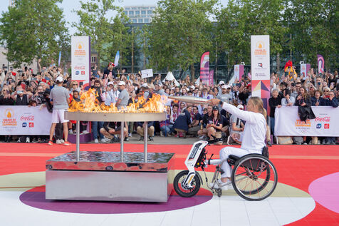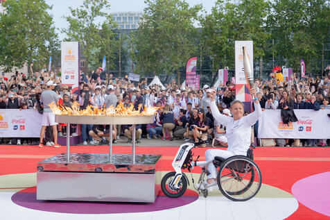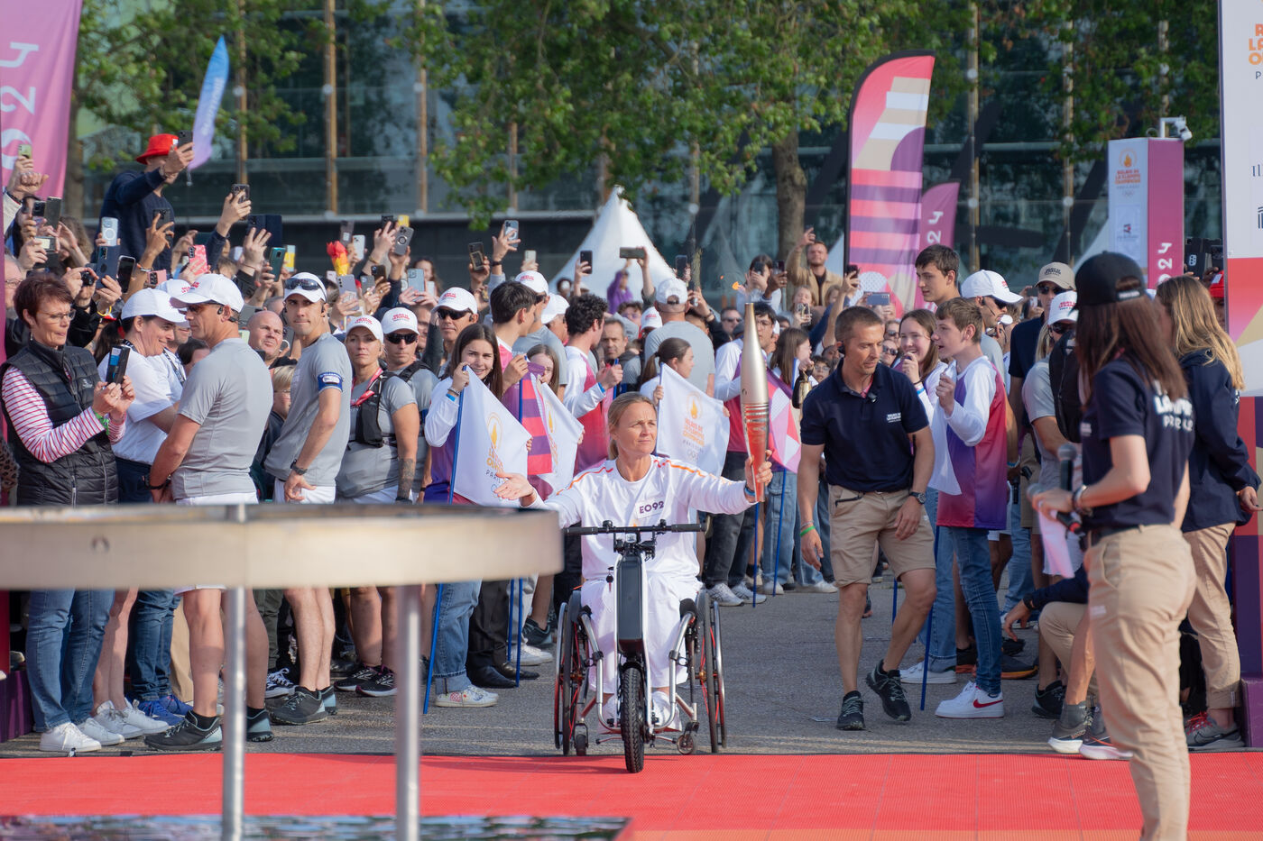 Relais de la flamme Olympique à Rennes avec l'allumage du chaudron Esplande Charles de Gaulle.