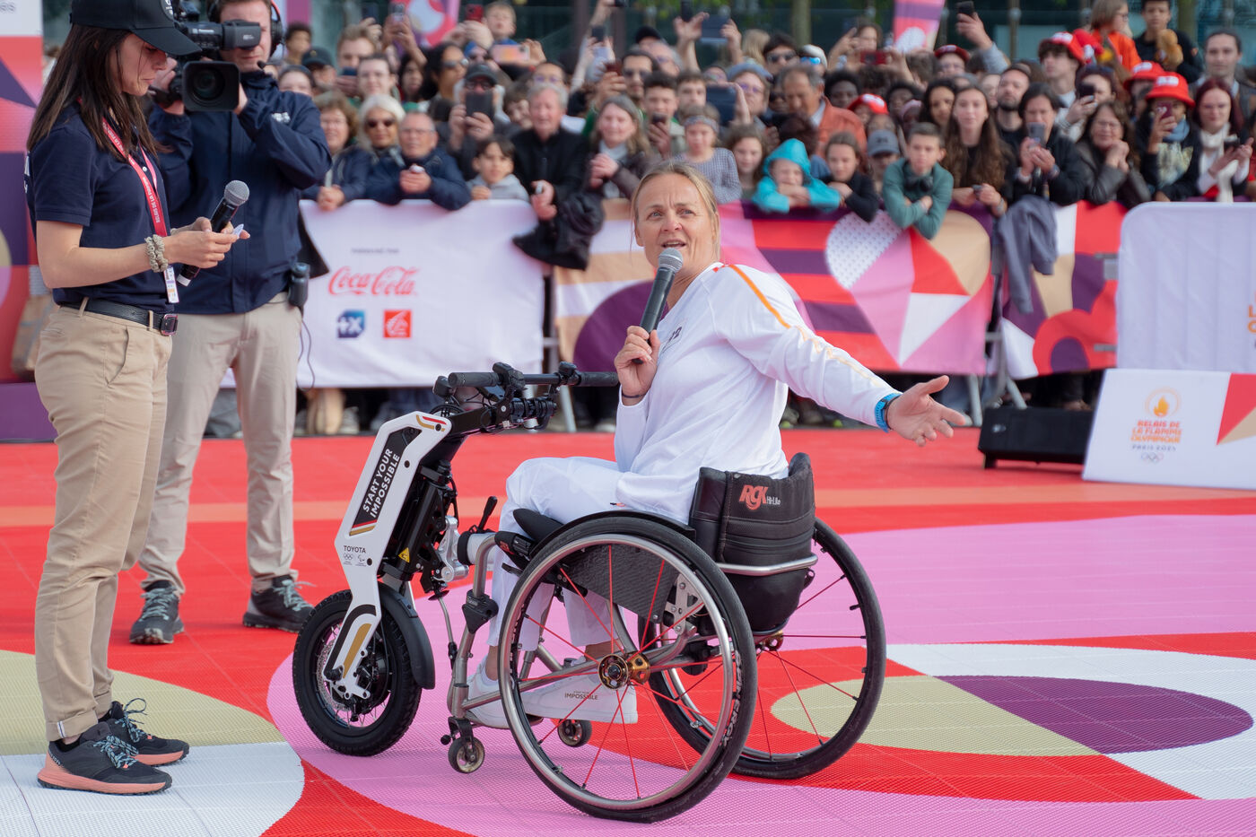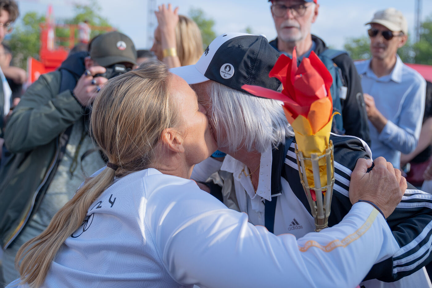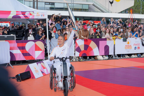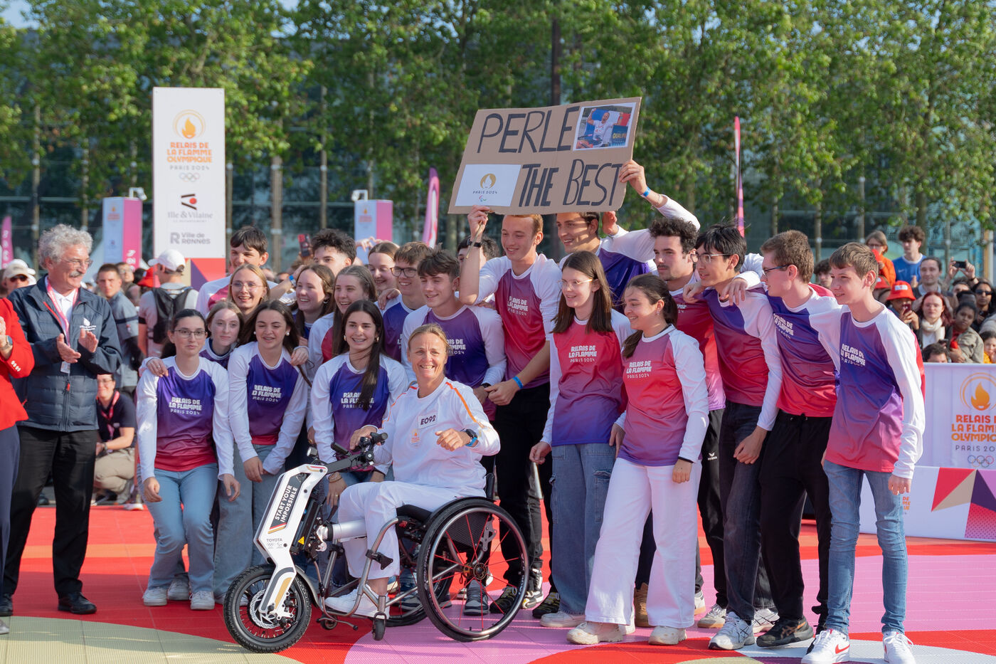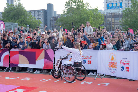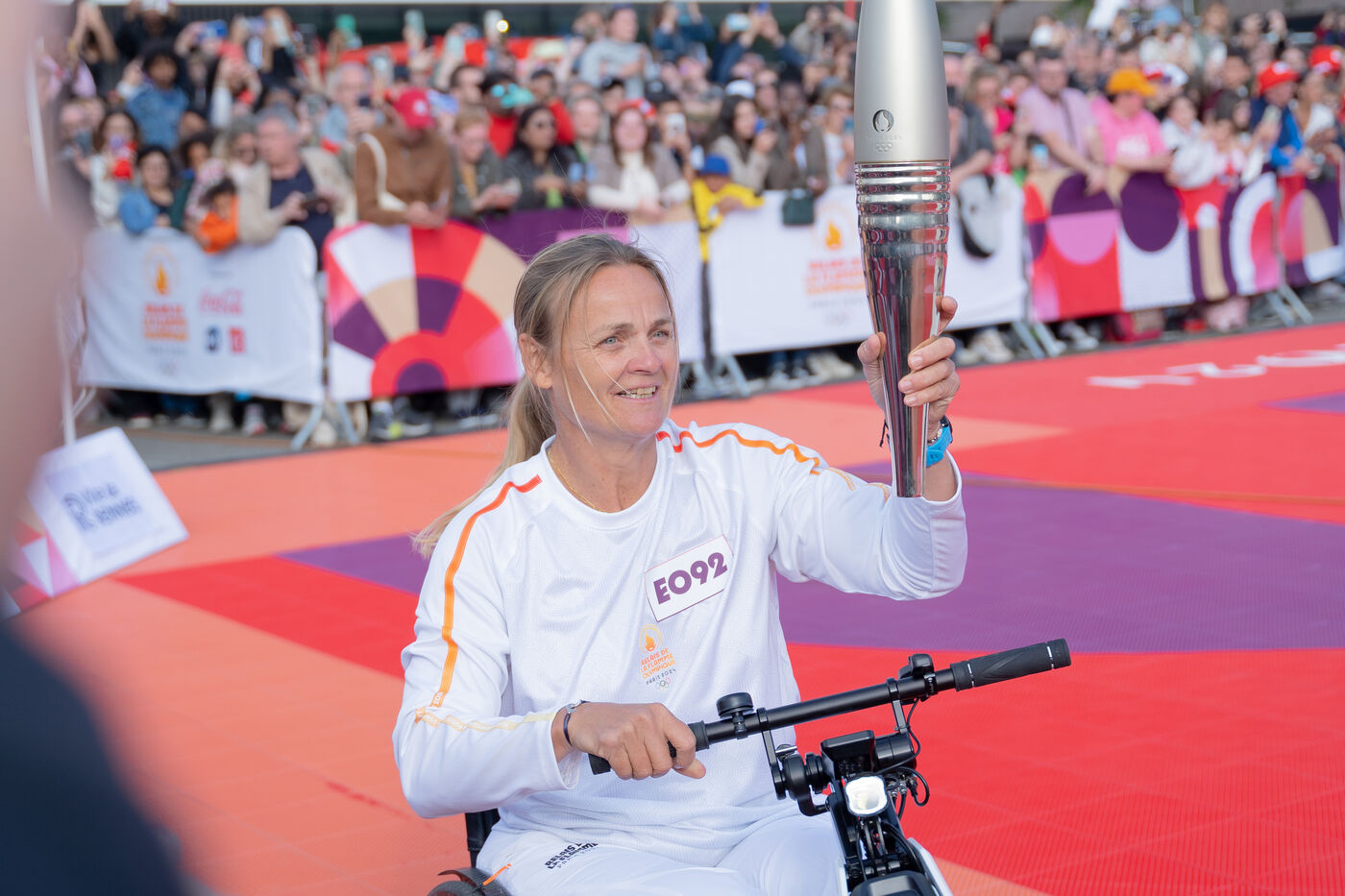 Relais de la flamme Olympique à Rennes avec l'allumage du chaudron Esplande Charles de Gaulle.