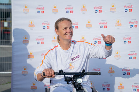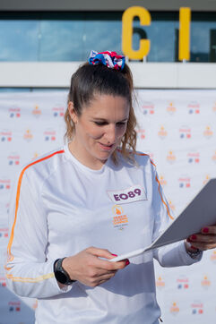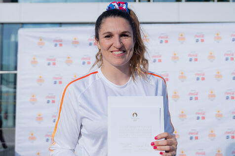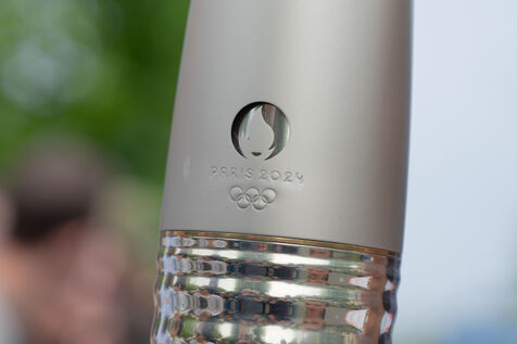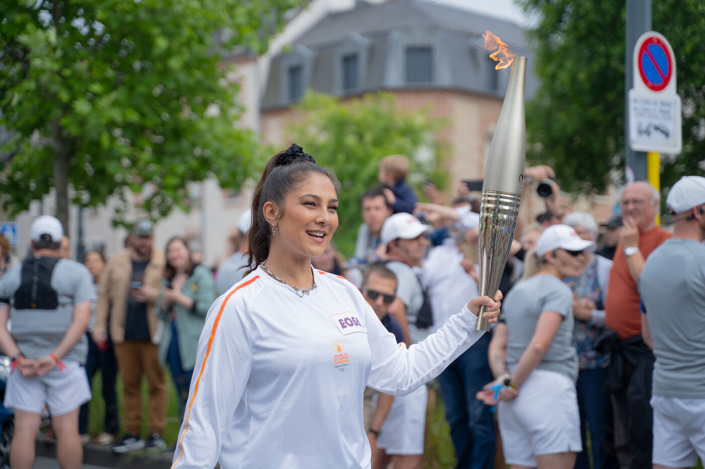 Olympic torch relay in Rennes with the lighting of the Esplande Charles de Gaulle cauldron.