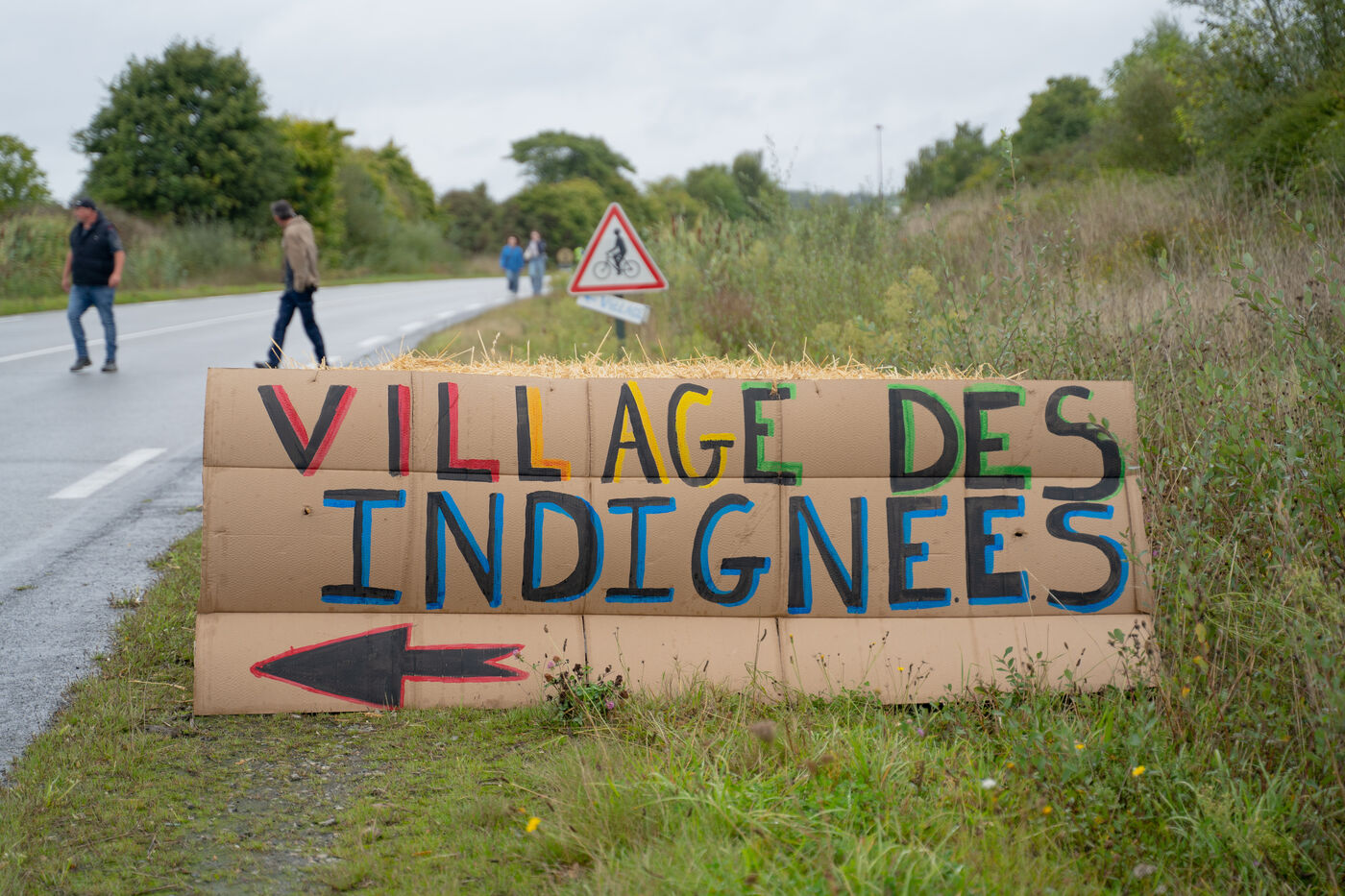 In Châteaugiron, a small town in the Ille-et-Vilaine department, individual activists organized a gathering near the Hyper U supermarket, and then held a demonstration on a main road in the town, following the "Block Everything" movement, on September 10th. They set up a camp near the road, which they called the "Village of the Outraged."