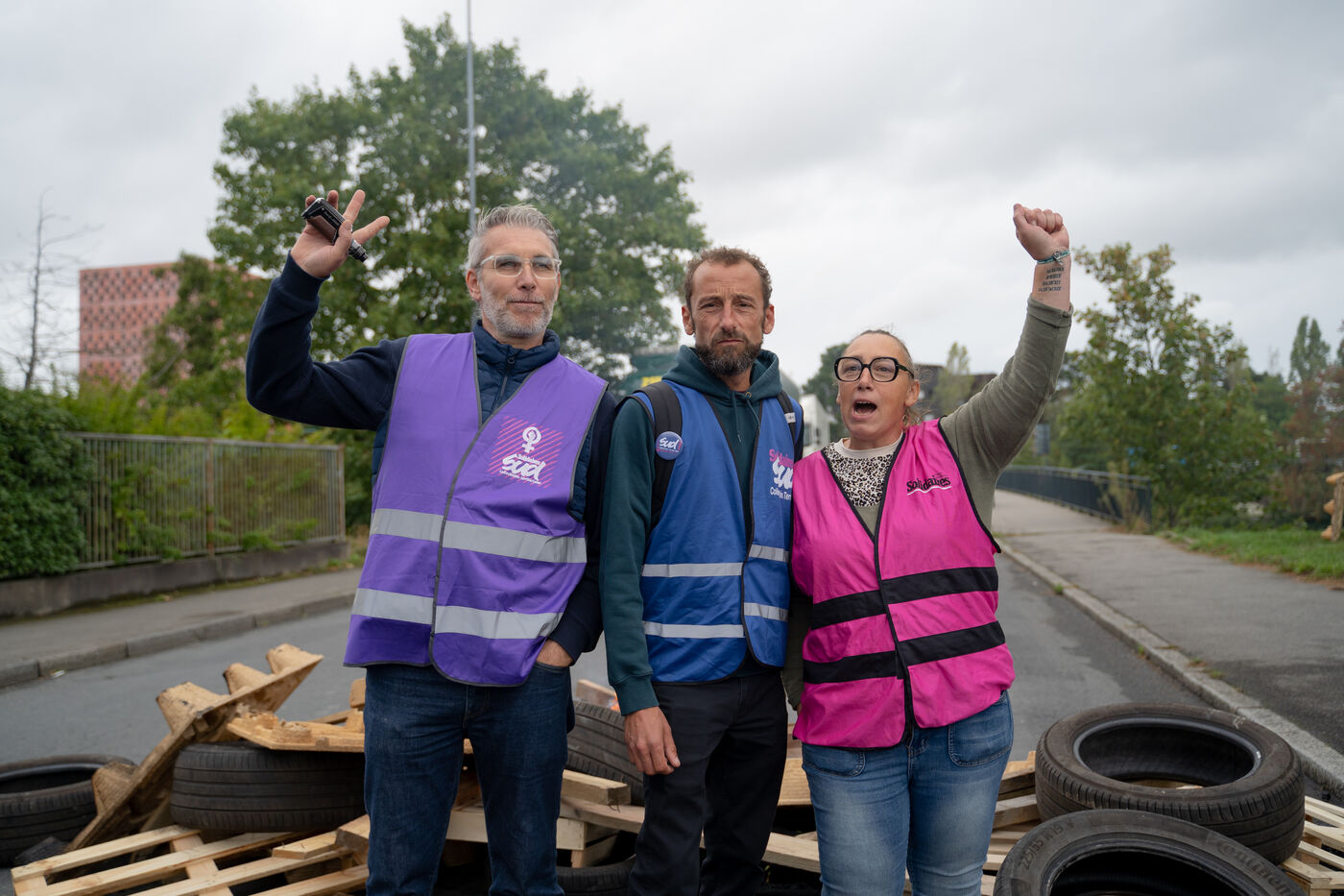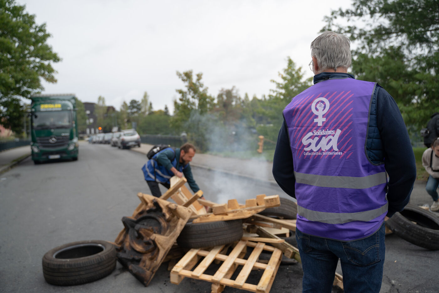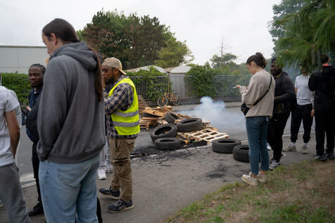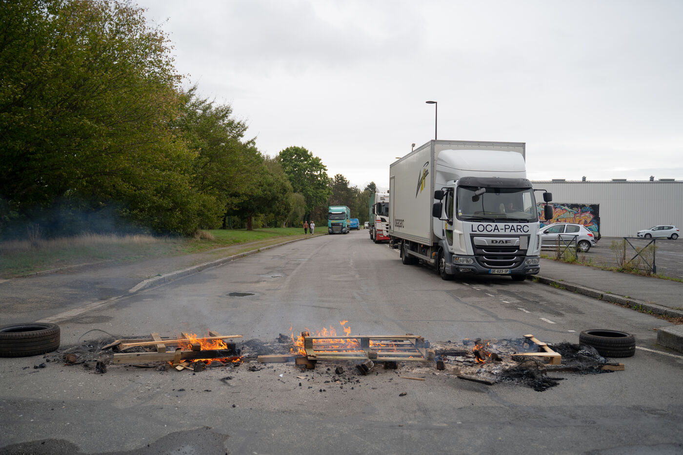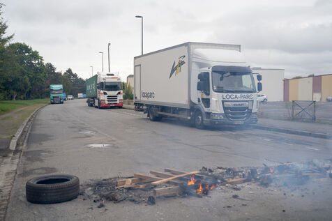 Protesters from the Solidaire group blocked bus traffic operated by Keolis and trucks heading to the Amazon warehouse in La Plaine de Baud.