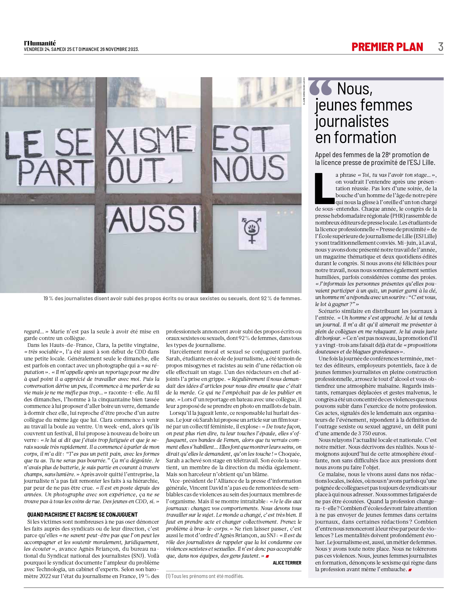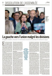 Claire Série Publications Séries / Archive Culture — Environnement — Grand Ouest — Paris — Politique — Société — Sport — Boutique Sélection de séries L'OBS 14/11/2024 Figaro 7 octobre La Croix du 19/09/2024 Figaro 5 aout 2024 Les Échos Juillet 2024 Humanité 25 Juin 2024 Les jours Juillet 2024 La Chronique, 452-453 / Juillet-Aout 2024 Le Monde 12 Juin 2024 L'Humanité 12 JUIN 2024 Elle France N.4067 - 30 Novembre 2023 L'Humanité 24/25/26 Novembre 2023 Le Monde 24/04/2023 L’Humanité du 28/04/2022
