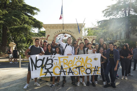 Youth strike for climate. High school's students of Lycee Carnot demonstrating for the climate in Cannes, 20 september 2019.