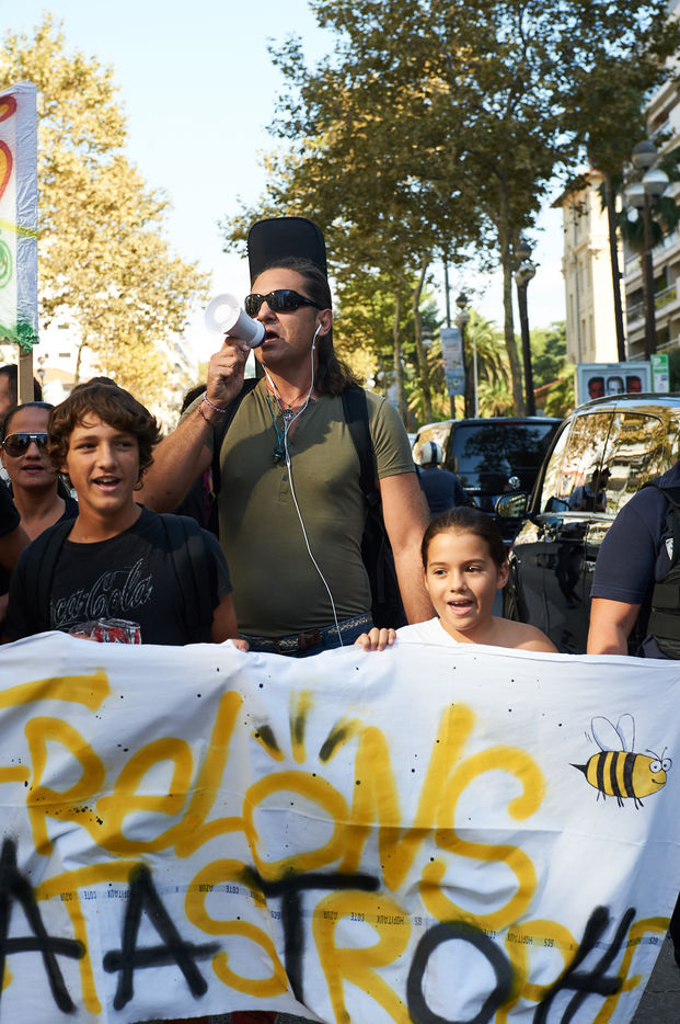 Jeunesse en grève pour le climat. Manifestation des lycéens du lycee Carnot dans le rues de Cannes à l'occasion de la marche des jeunes pour le climat, 20 septembre 2019.