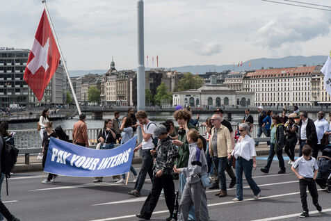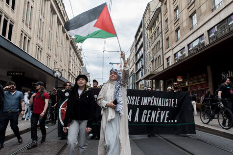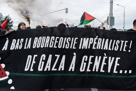 Despite the fact that May 1st, Labor Day, is not a public holiday in Geneva, Switzerland, the population nevertheless gathered to march in procession and make various demands. At the head and end of the cortege, a pro-Palestinian bloc was very much in evidence.
