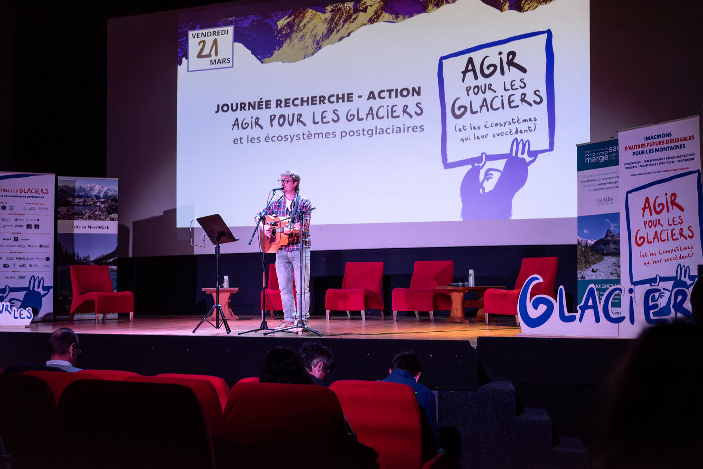 Glaciers are melting fast. This is a serious time for scientists. Through the Marge Sauvage association, glaciologist Jean-Baptiste Bosson has set up the « Acting for glaciers » festival, held in Bourg-Saint-Maurice from the 20th to 22nd of March 2025. The aim ? To provide food for thought and solutions to the impact of climate change in the mountains, as part of the International Year of Glaciers. Above all, to popularise the scientific findings through art forms such as theatre, music, dance, photography, drawing and storytelling, in order to convey the urgency of the situation. Putting love and the collective back at the centre of discussions. The glaciers will continue to melt, but it is still possible to prevent them from disappearing.