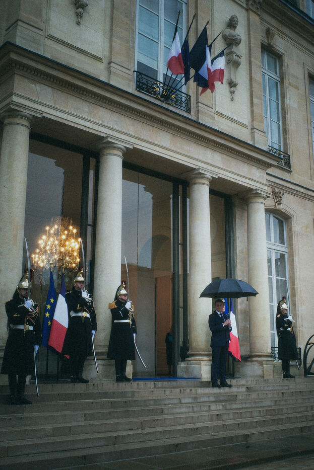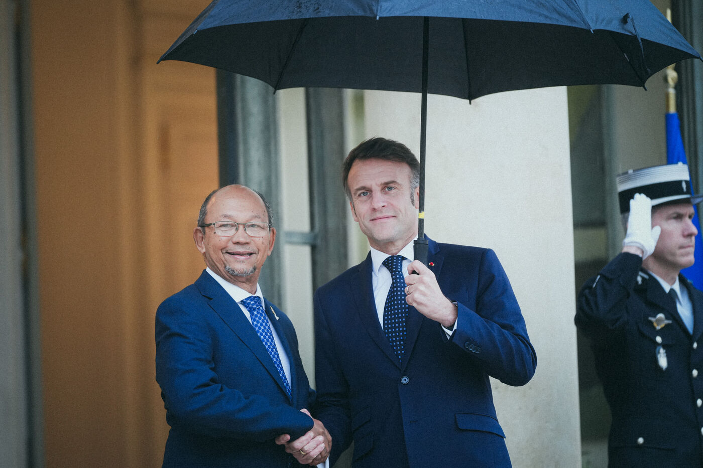 Reception of Leslie Voltaire President of the Transitional Presidential Council of Haiti at the Elysee Palace in Paris France on 29th January 2025