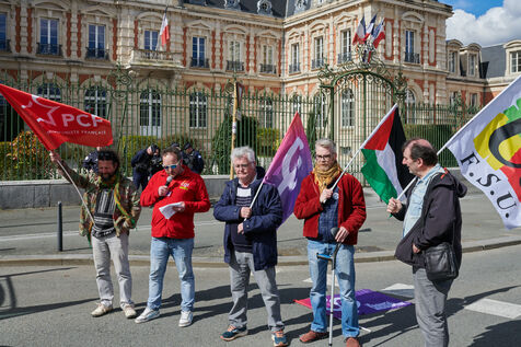 Manifestation à Chaumont devant la préfecture de Haute-Marne de LFI La France insoumise, avec le syndicat la CGT et le Parti Communiste Français contre l’extrême droite et contre le racisme. 22 mars 2025.