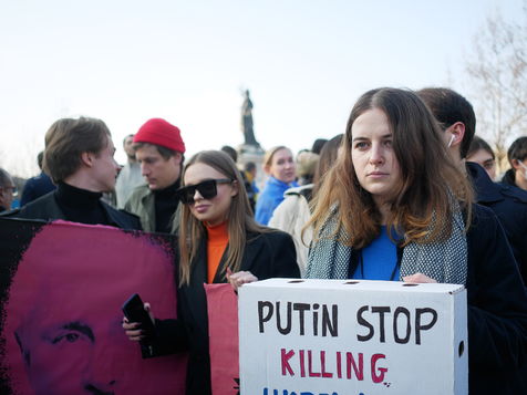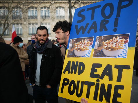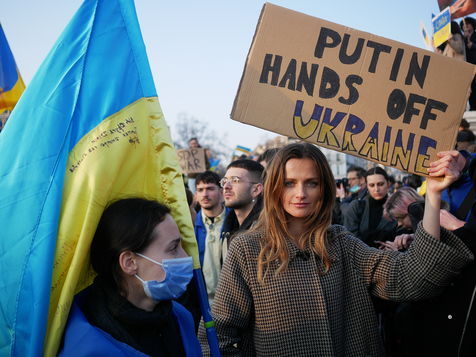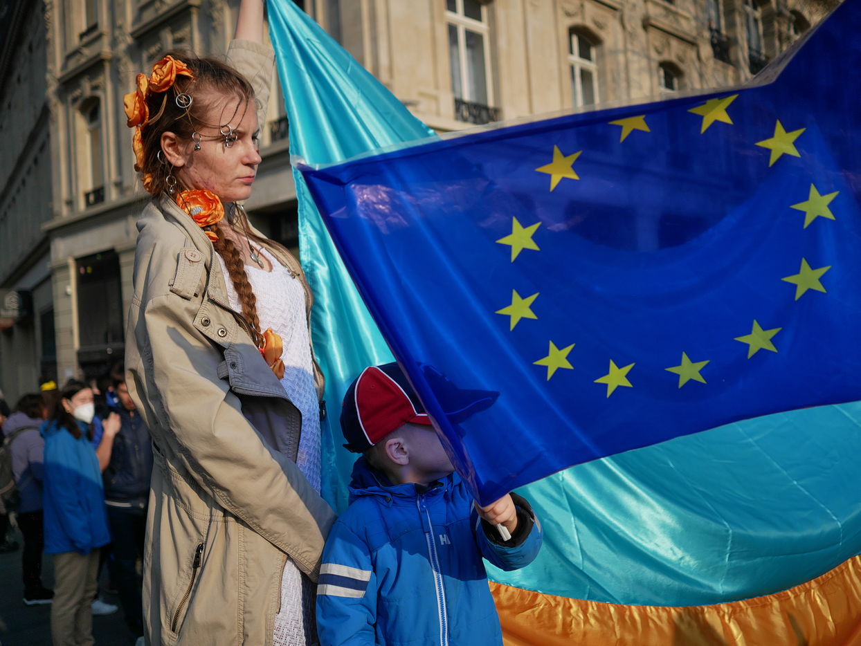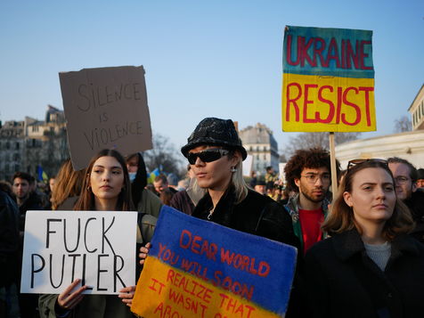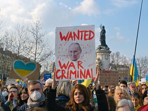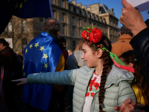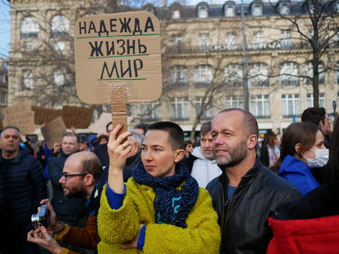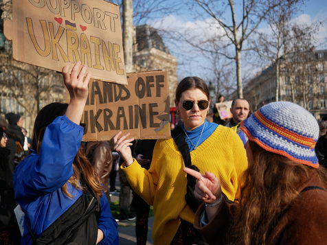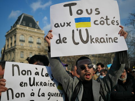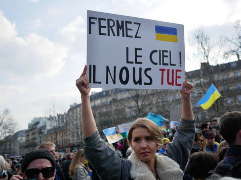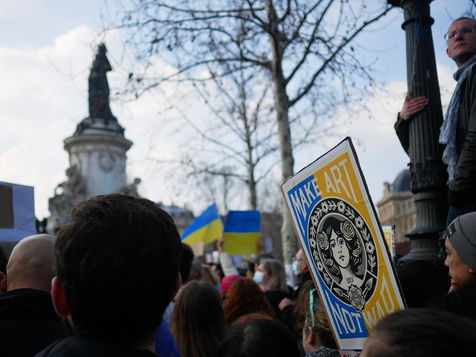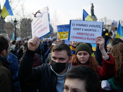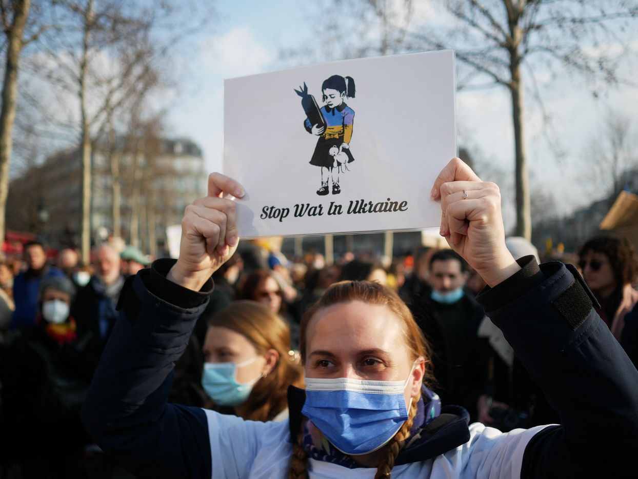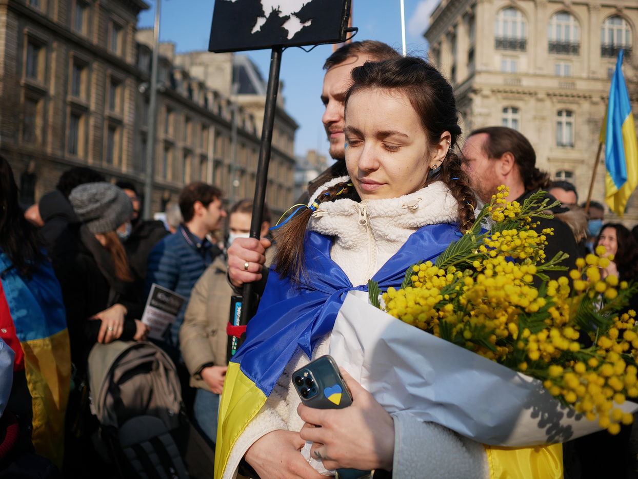 Demonstrators gathered at the Place de la Republique in Paris in support of the Ukrainian people following the invasion of their territory by Russia.