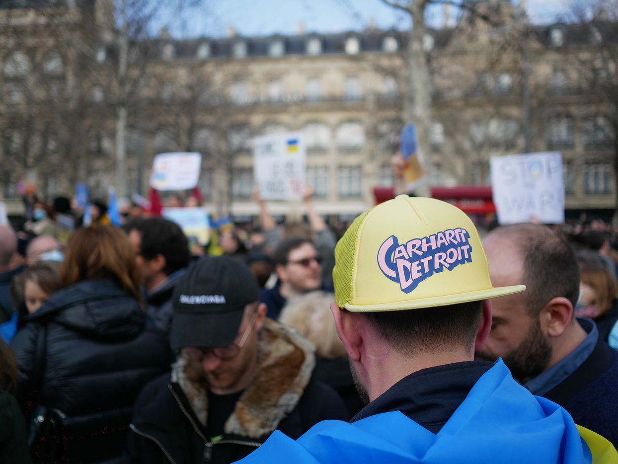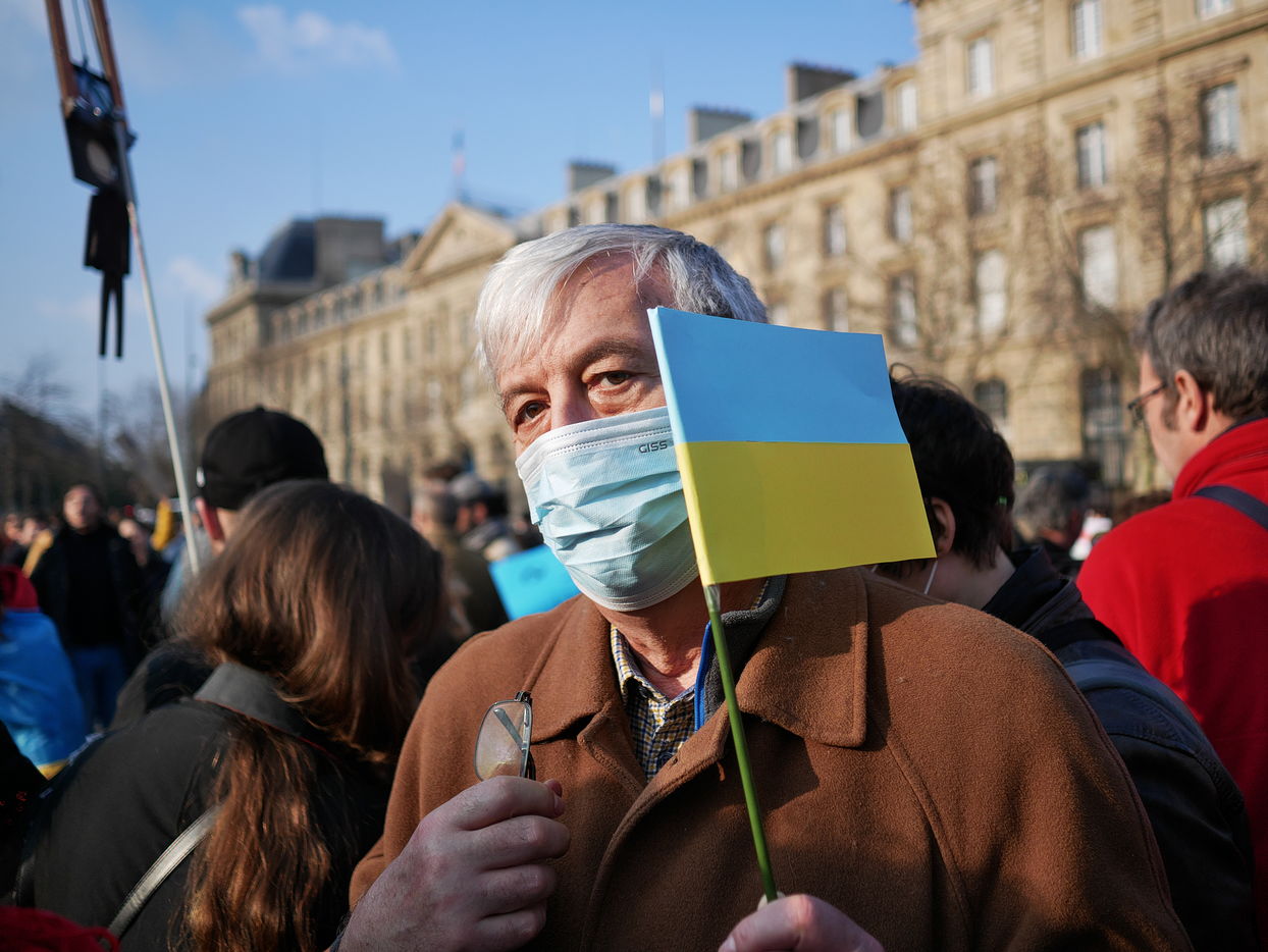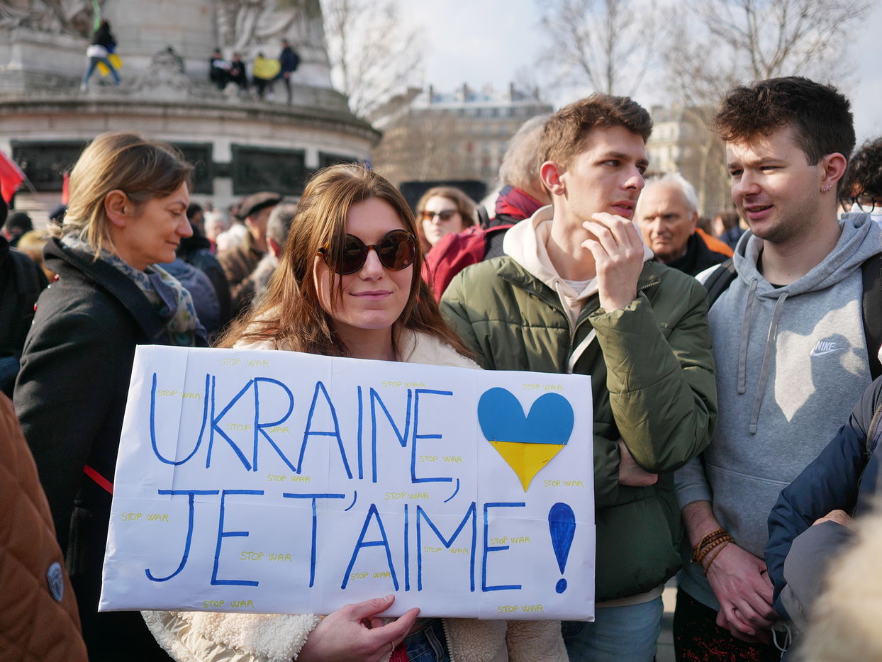 Des manifestants se sont rassemblés place de la république à Paris en soutien au peuple ukrainien suite à l'invasion de leur territoire par la Russie.