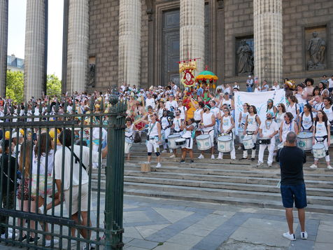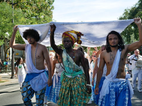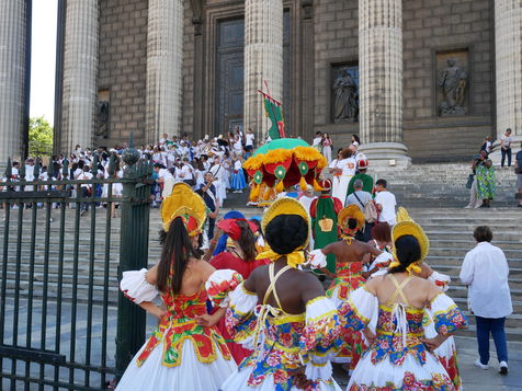 Established since 2002 in Paris, this tradition originates from Salvador de Bahia. The "lavagem do Bonfim" is an interreligious celebration between African animist rites and Catholic procession. In the 18th century, members of the brotherhood of devout laymen who forced slaves to wash the church of Bonfim finally forbade them to enter when they realized that the slaves, who had taken refuge in the Candomblé belief, had made it a ritual. They were then assigned only to wash the steps of the church and the cemetery. Today, Bahian women pour perfumed water on the steps.