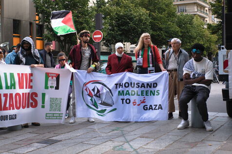 Demonstration in support of the Palestinian people in the presence of members of the Freedom Flotilla for Gaza.