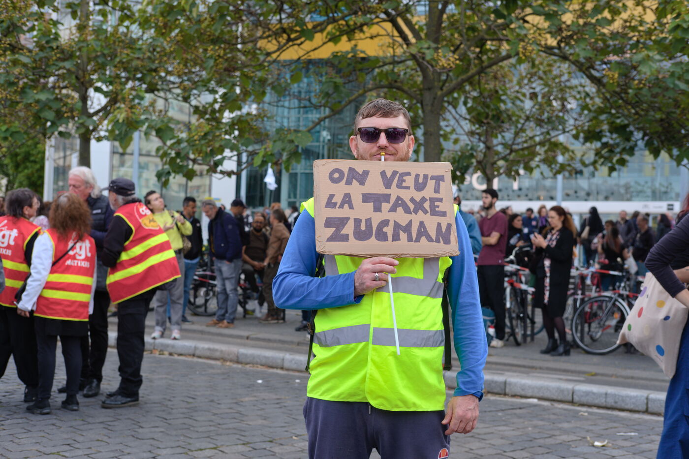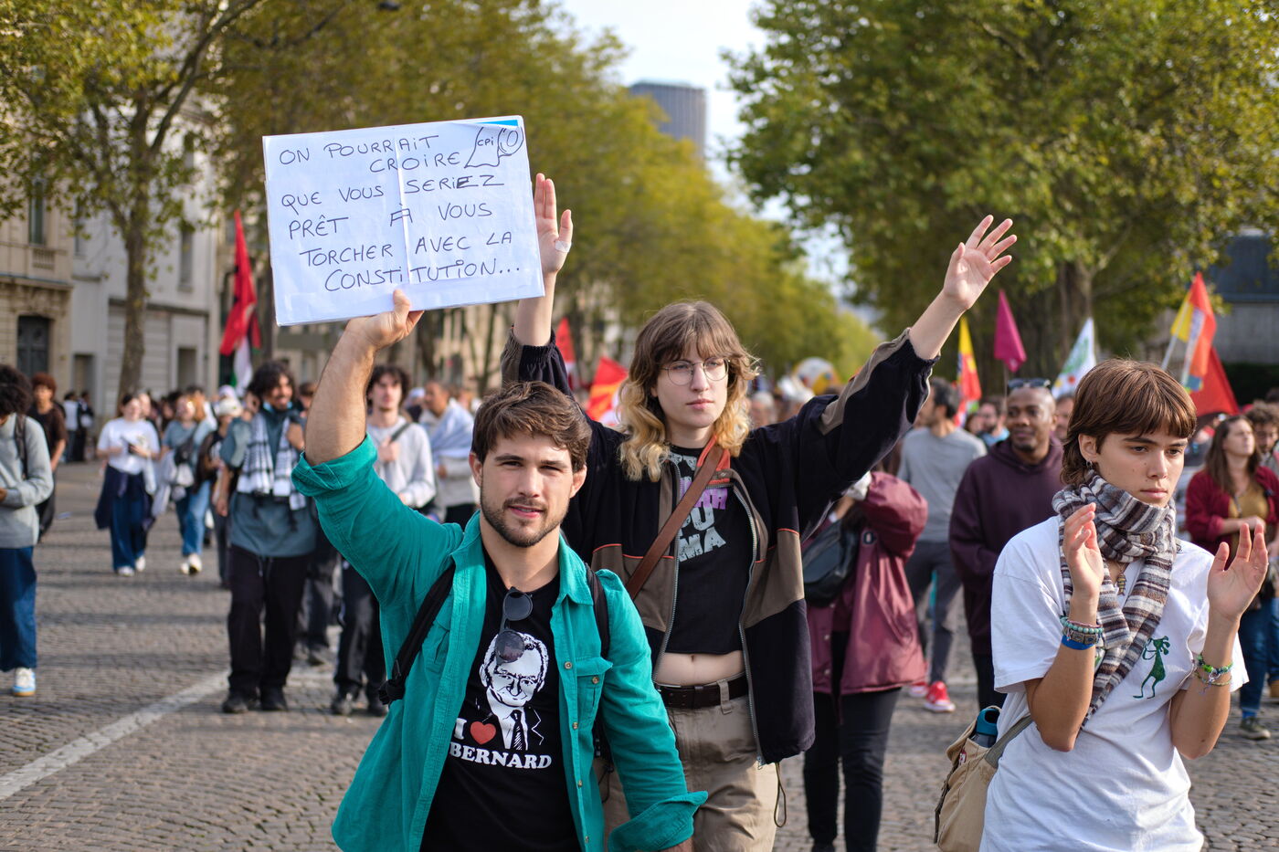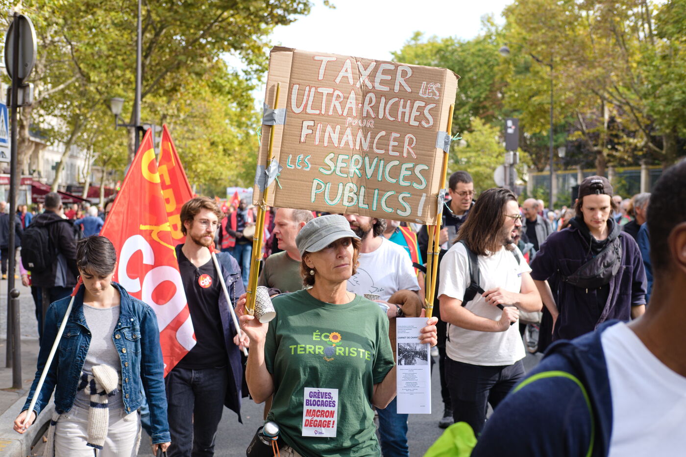 A l'appel de l'intersyndicale, manifestation pour le retrait des mesures d'économie budgétaires et pour plus de justice sociale et fiscale.