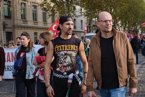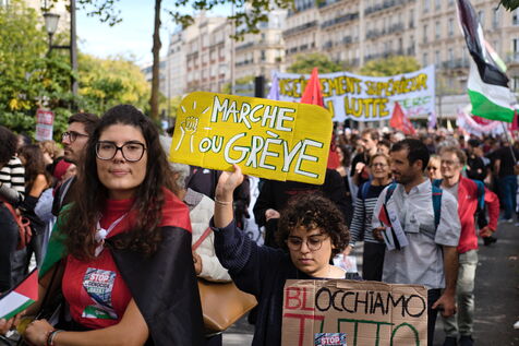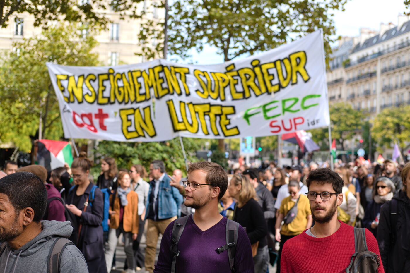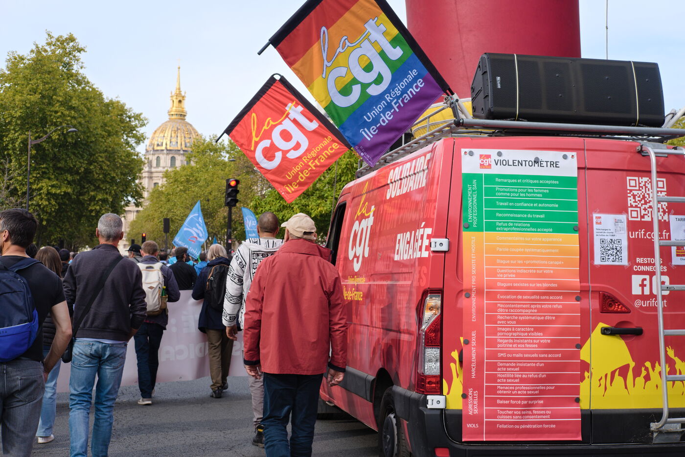 A l'appel de l'intersyndicale, manifestation pour le retrait des mesures d'économie budgétaires et pour plus de justice sociale et fiscale.