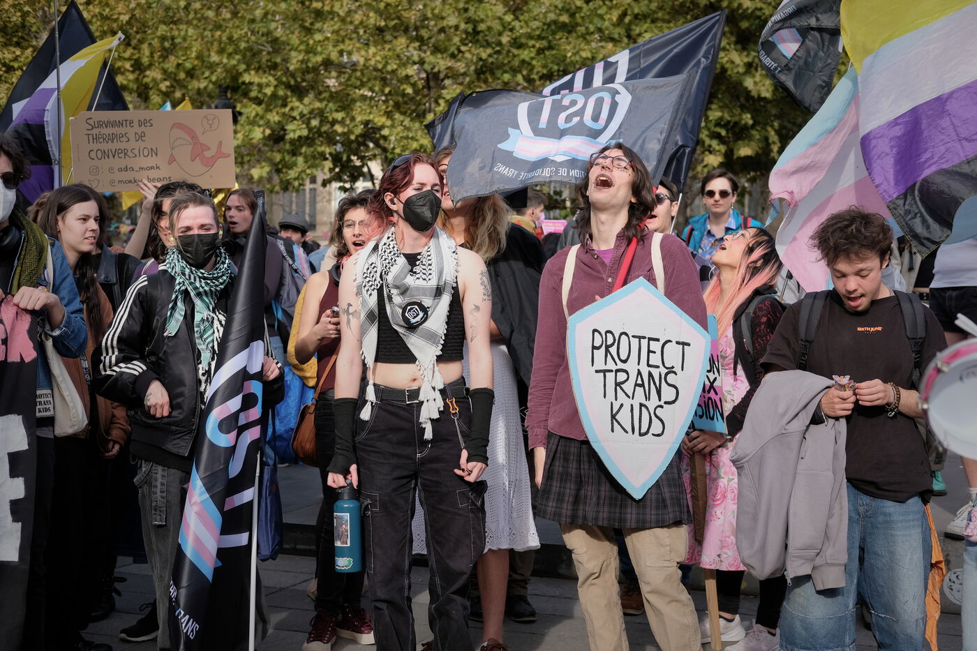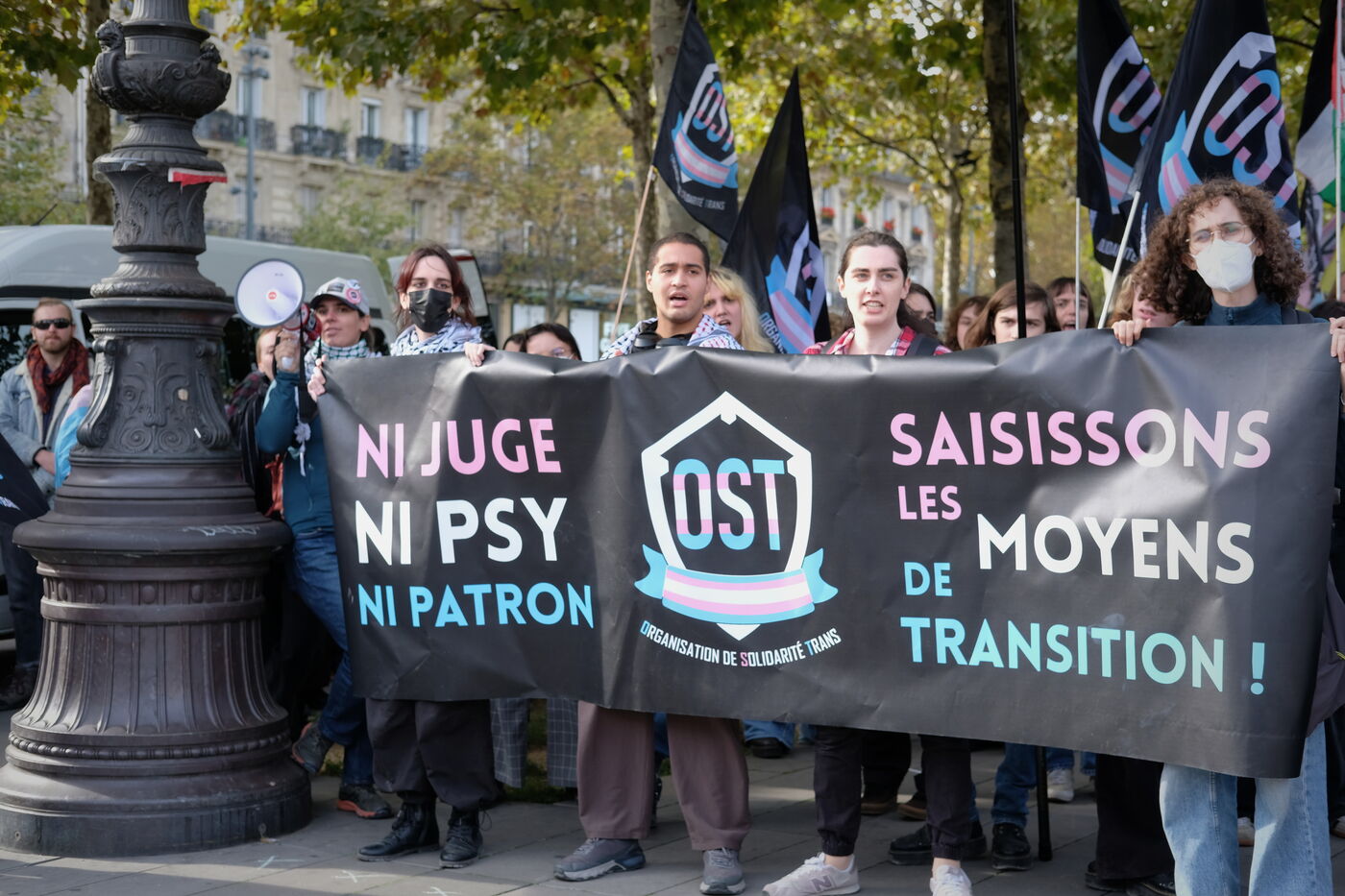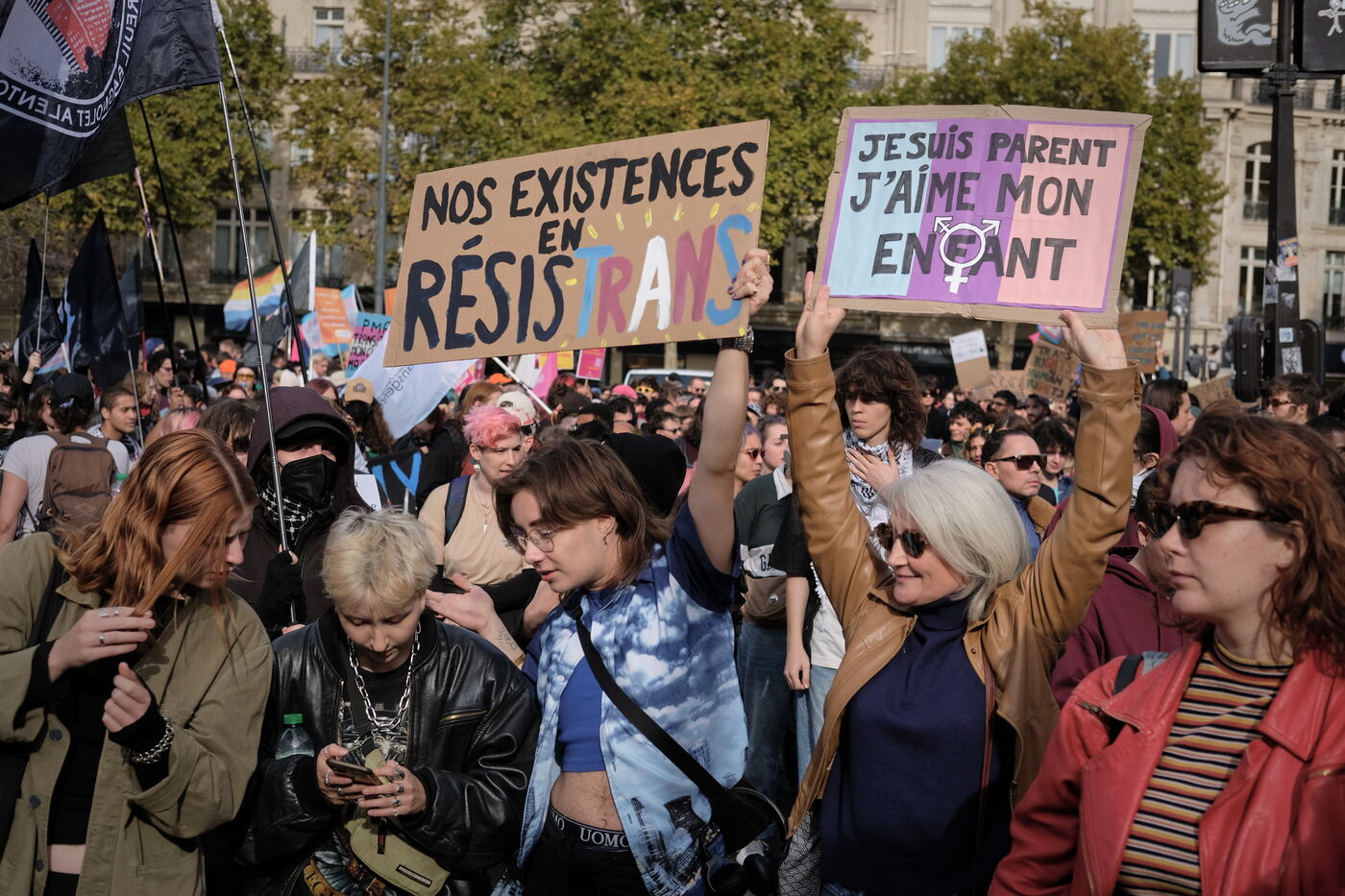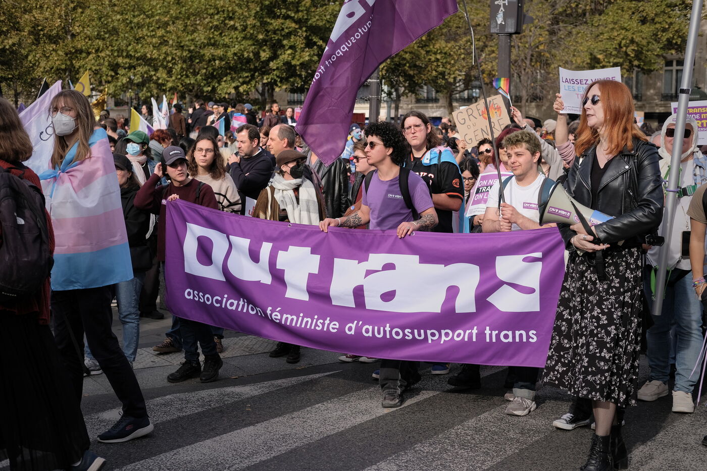 At the call of the ExisTransInter Collective, demonstration against transphobia in Paris.