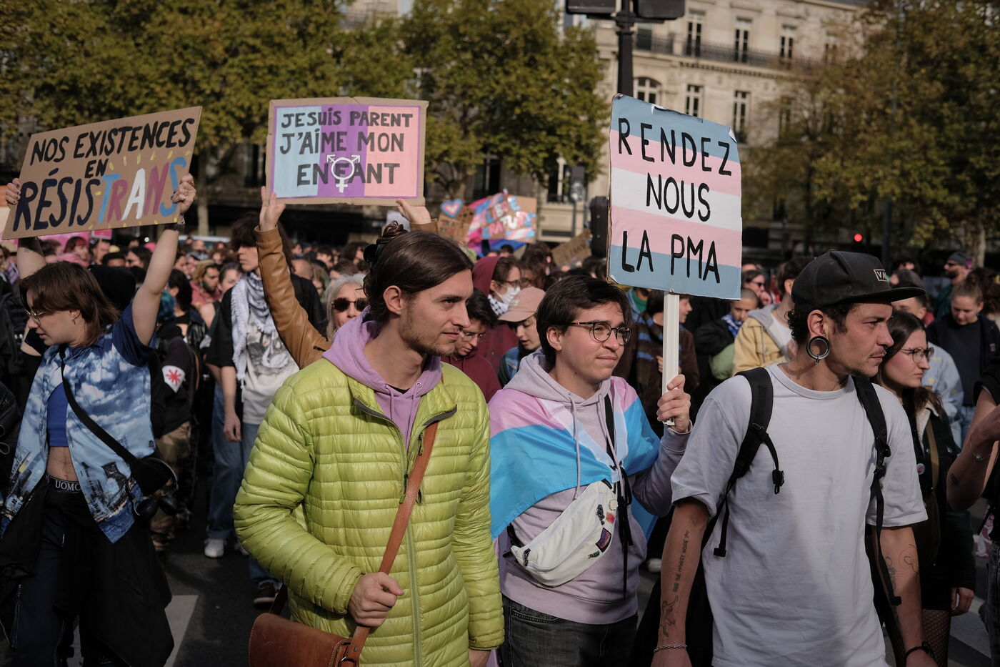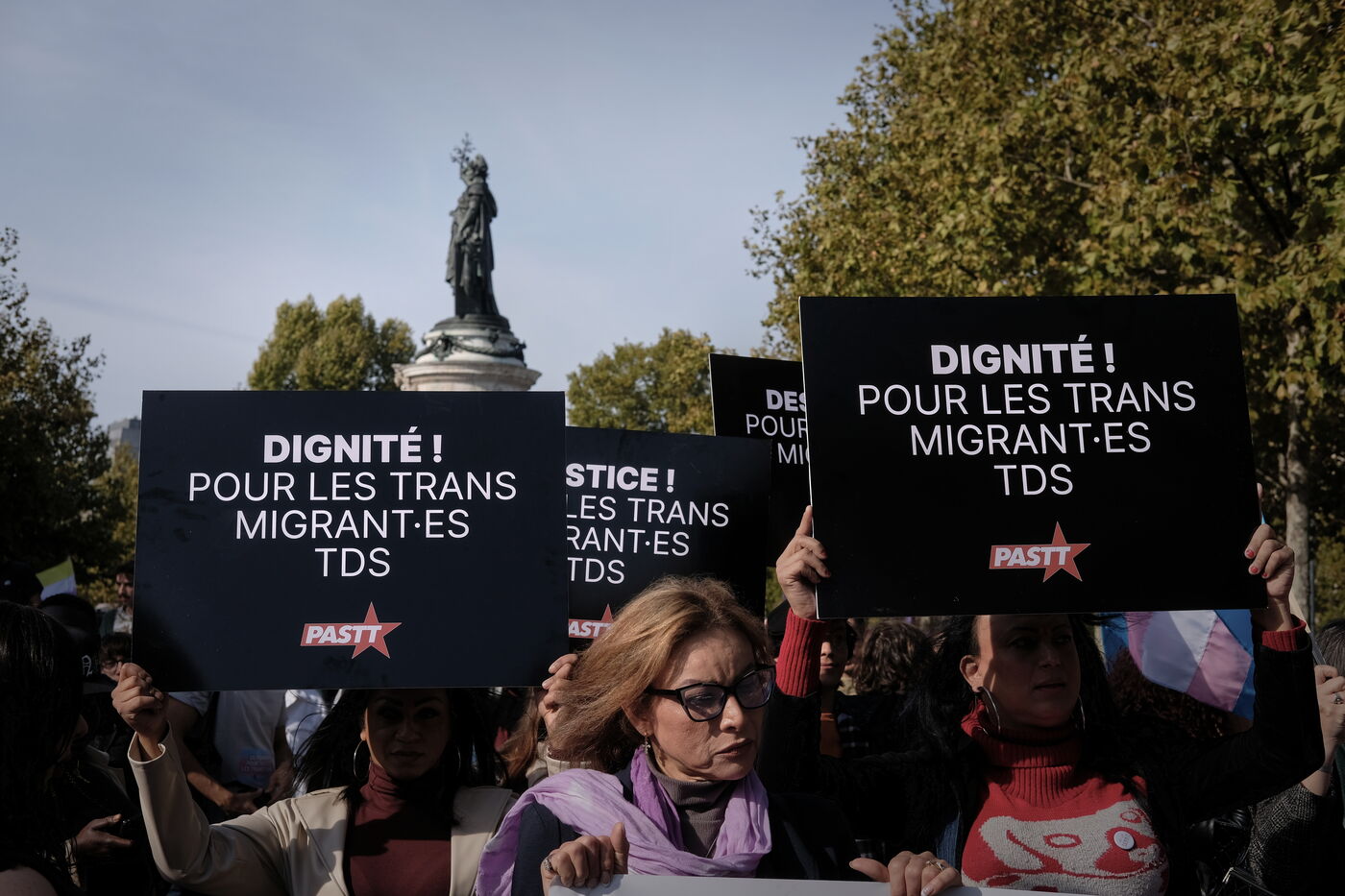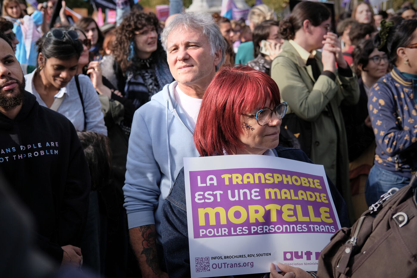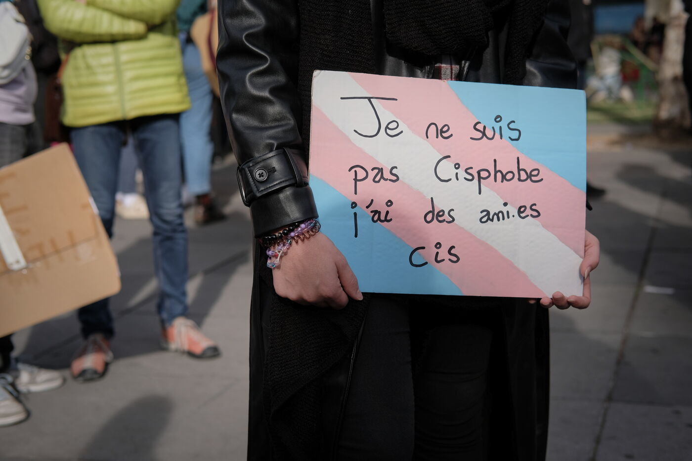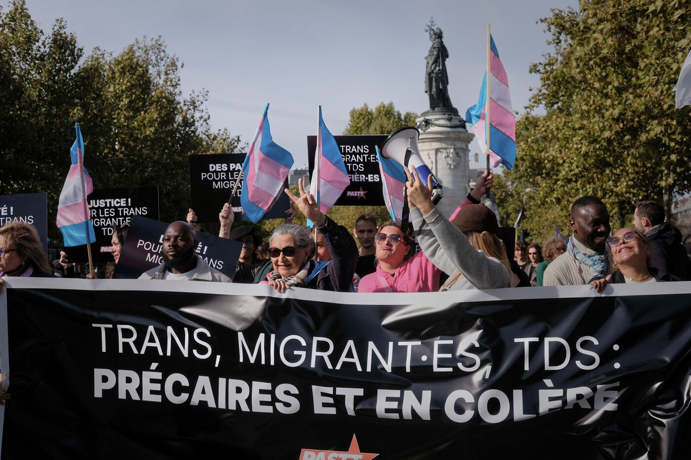 At the call of the ExisTransInter Collective, demonstration against transphobia in Paris.