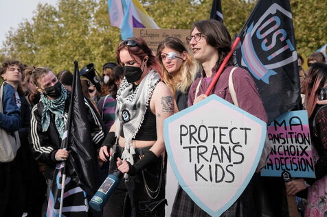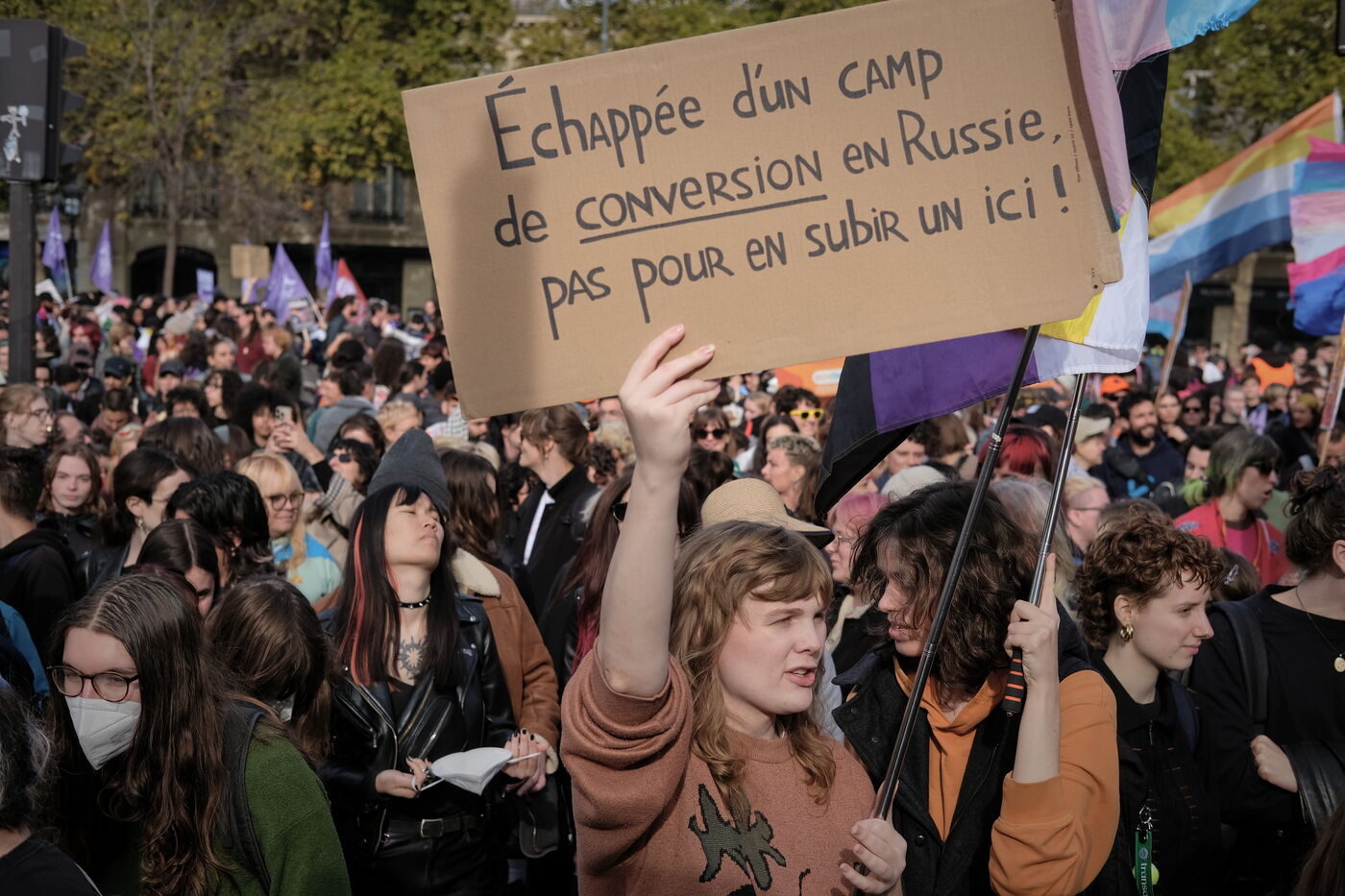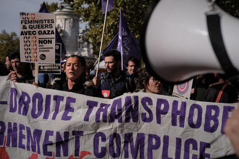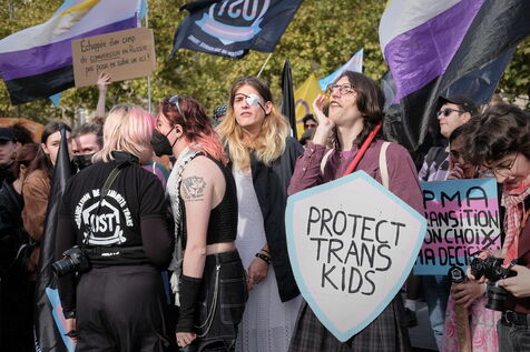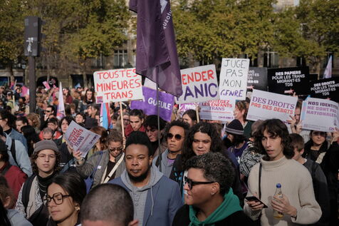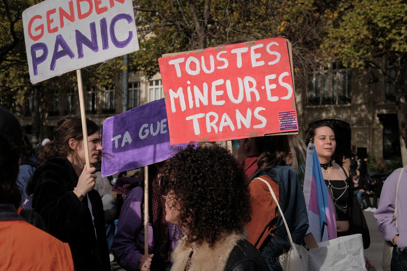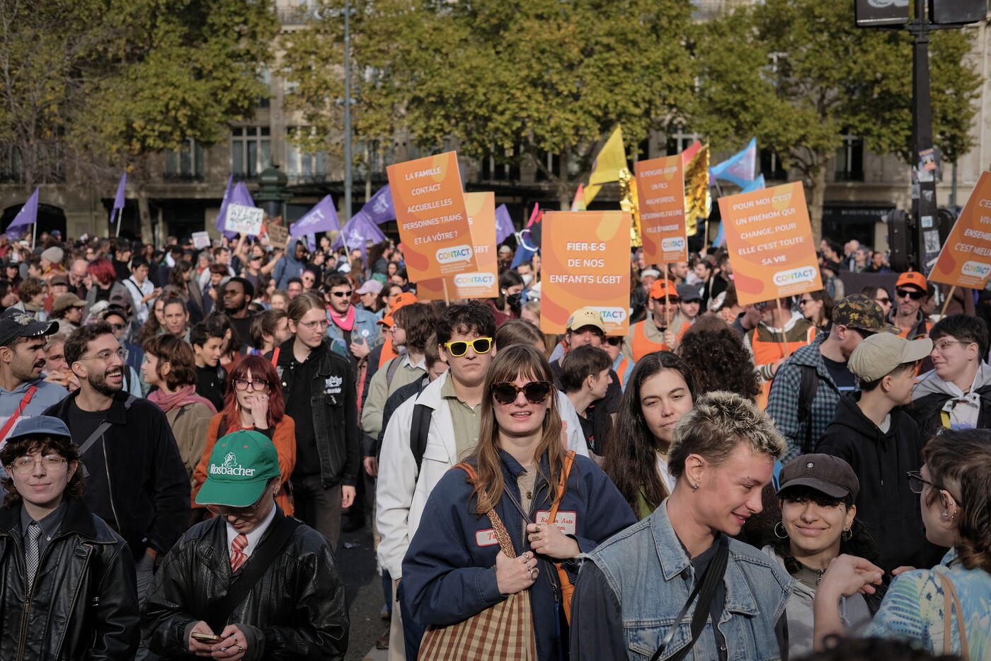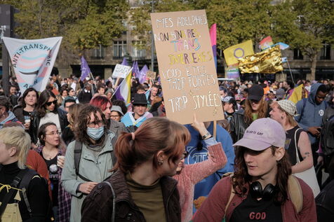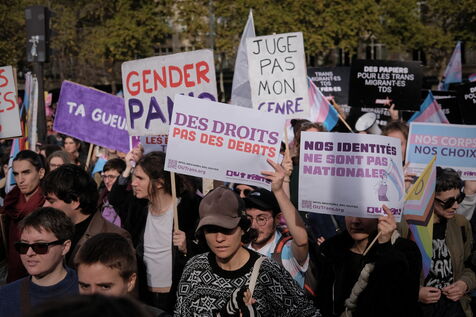 At the call of the ExisTransInter Collective, demonstration against transphobia in Paris.