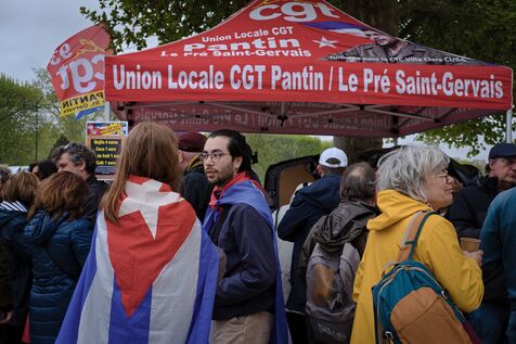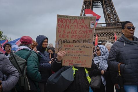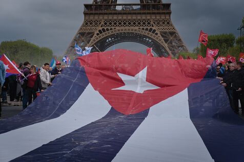 At the call of the French Communist Party (PCF) and solidarity organizations, a rally to denounce the blockade against Cuba, support Cuban sovereignty, and call for the lifting of U.S. sanctions.