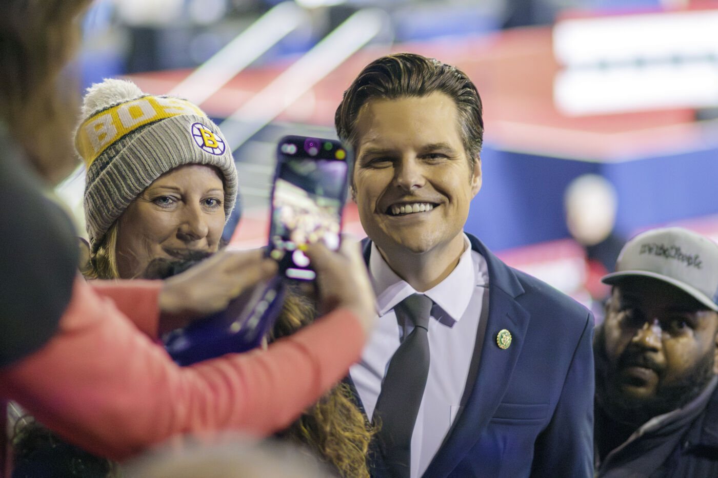 Speech by Donald Trump during his campaign meeting for the Republican primary for the 2024 American presidential election. Manchester (NH), USA, January 20, 2024.