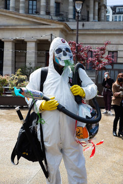 Dénonciation de l'industrie agrochimique avec la 9ème marche contre Monsanto-Bayer à Paris. Après plusieurs scandales du aux pesticides et autres produits toxiques, les citoyens demandent aujourd'hui, une agriculture plus respectueuse de notre santé et une justice environnementale.