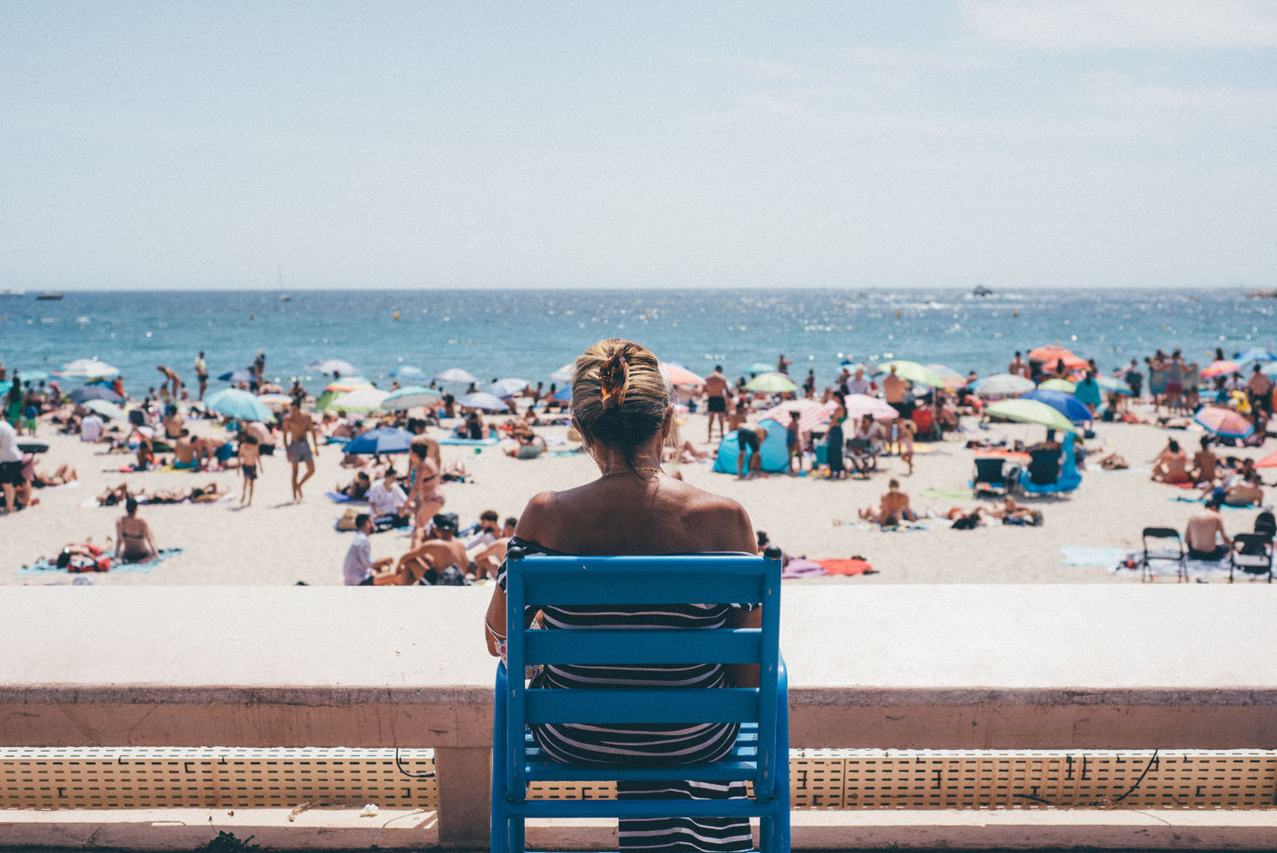 Les Français en vacances à la plage, dans le sud de la France et promenade sur la croisette.
