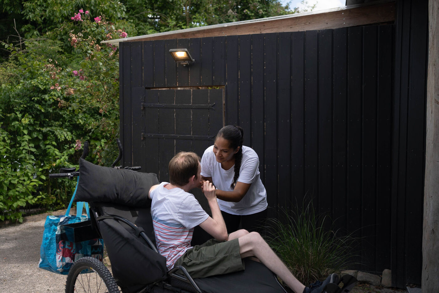 France, La Madelaine sous Montreuil, 2025/07/19. Les Bobos à la Ferme est un tiers lieu adapté pour les personnes en situation de handicap et à leurs aidants, situé dans le Pas de Calais. Vue depuis la route. Photographie de Delphine Lefebvre / Hans Lucas pour La Croix L'Hebdo.