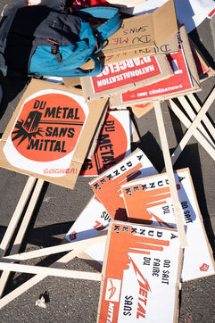 Mobilisation a week after the announcement of the loss of several hundred jobs at the world's second largest steel producer. May Day demonstration in Dunkirk with Arcelor Mittal employees called by the CGT. 295 jobs threatened at the coastal steelworks.