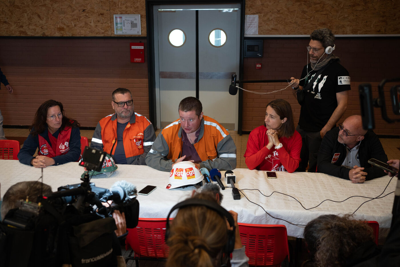 Demonstration by Arcelor Mittal employees in Dunkirk during stage 3 of the Tour de France. A popular and festive gathering organised by the CGT to defend jobs in the steel industry.