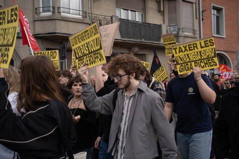 Manifestation à l'initiative de l'intersyndicale à Calais. Photographie de Delphine Lefebvre / Hans Lucas.