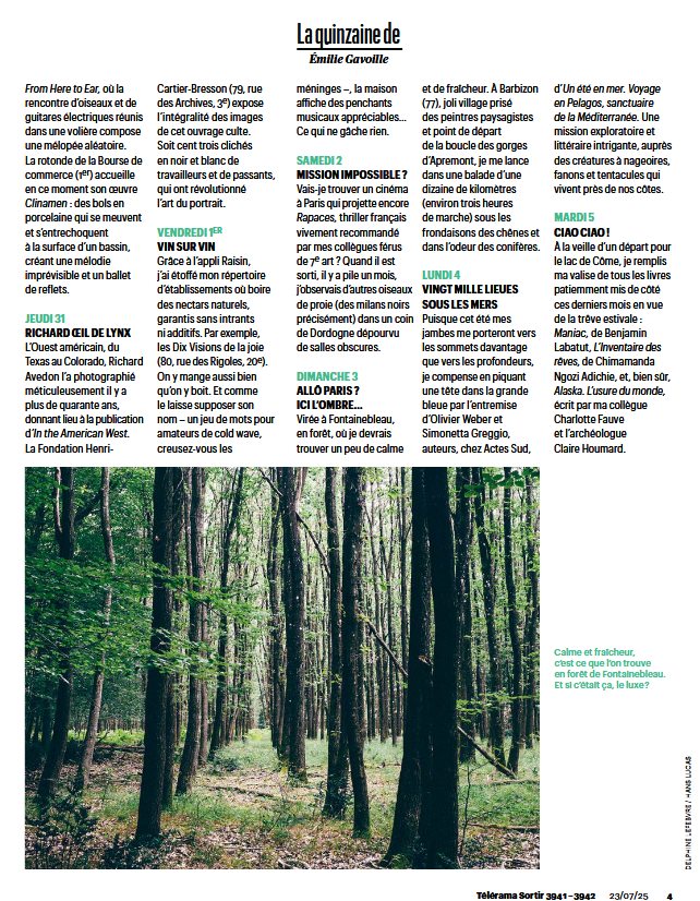 Delphine Lefebvre Publications Séries / Archive Culture — Environnement — Politique — Société — Sélection de séries Commande pour Le Pèlerin - 30 octobre 2025 Harper's Bazaar - Octobre 2025 Commande pour La Croix Hebdo - 27 septembre 2025 Commande pour La Croix Hebdo - 27 septembre 2025 Telerama juillet 25 Commande pour Le Pèlerin - 6 mars 2025 Commande pour La Vie - 6 mars 2025 p3 Commande Pour La Vie - 6 mars 2025 p2 Commande La Vie - 6 mars 2025 Commande pour le Pèlerin - 4 juillet 2024 Le M du Monde - 22 juin 2024 L'Obs - 20/06/2024 La Vie - 13/06/2024 Mémoires Vives - Le Devoir du 6/06/2024 Mémoires Vives - Le Devoir du 6/06/2024 L'Humanité - 28 mai 2024 Commande pour Le M du Monde - 25 mai 2024 Commande pour La Croix Hebdo - 4 mai 2024 Le Monde - 27 avril 2024 Commande pour La Croix - 26 juillet 2023