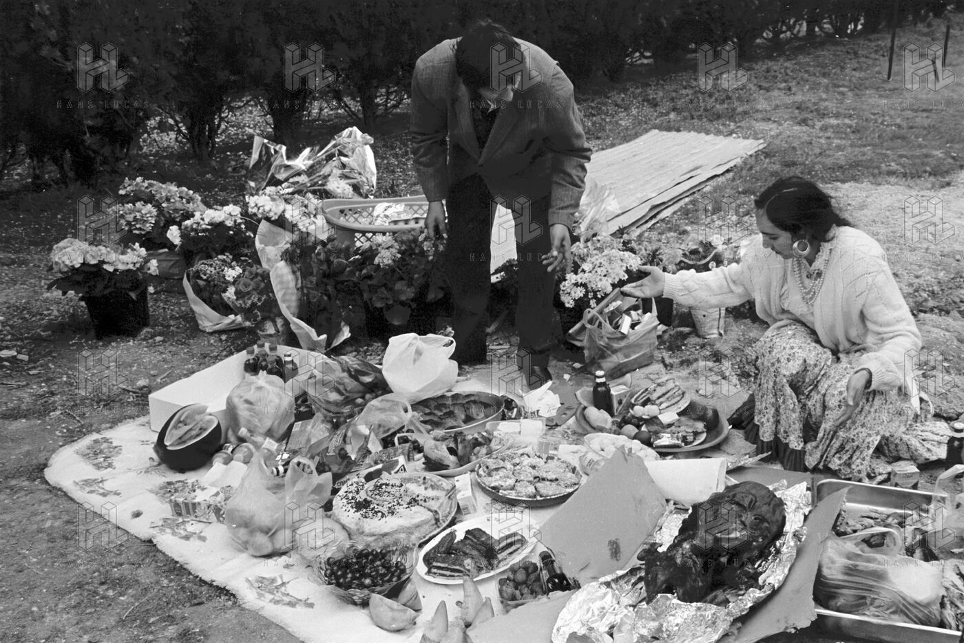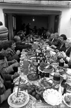 Personal project under development (since 1996). The pomana, a word of Slavic origin which means "memory", is a funeral meal preceded by a set of rites. It takes place on the day of burial, the following Saturday, forty days later, six months later and one year later; then on each anniversary of death for another six years. All donations made on the occasion of the pomana are supposed to go to the afterlife. Paradise is forty days away: the deceased therefore needs light (the candle lit at the time of death), money for the trip, cigarettes.