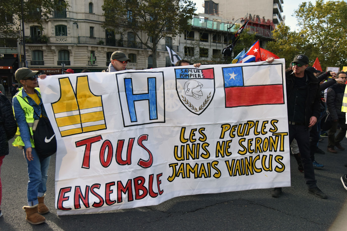 Several hundred people marched, half of them "yellow waistcoats", half of them supporters of the Chileans. The demonstration was declared by "Les resistants republicains et citoyens", joined by a call from the Chilean collective "Frente Amplio".