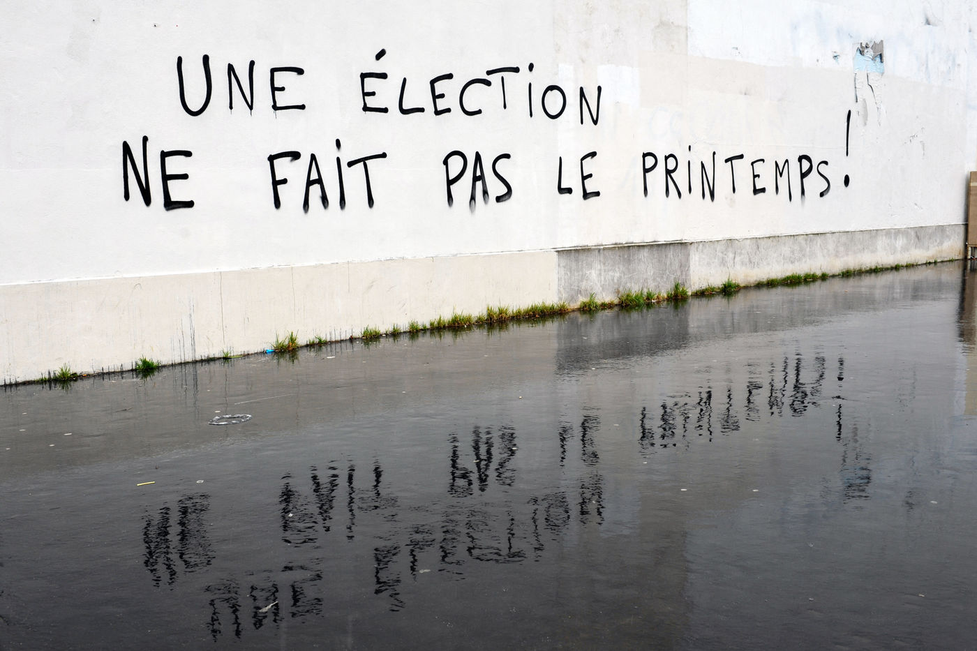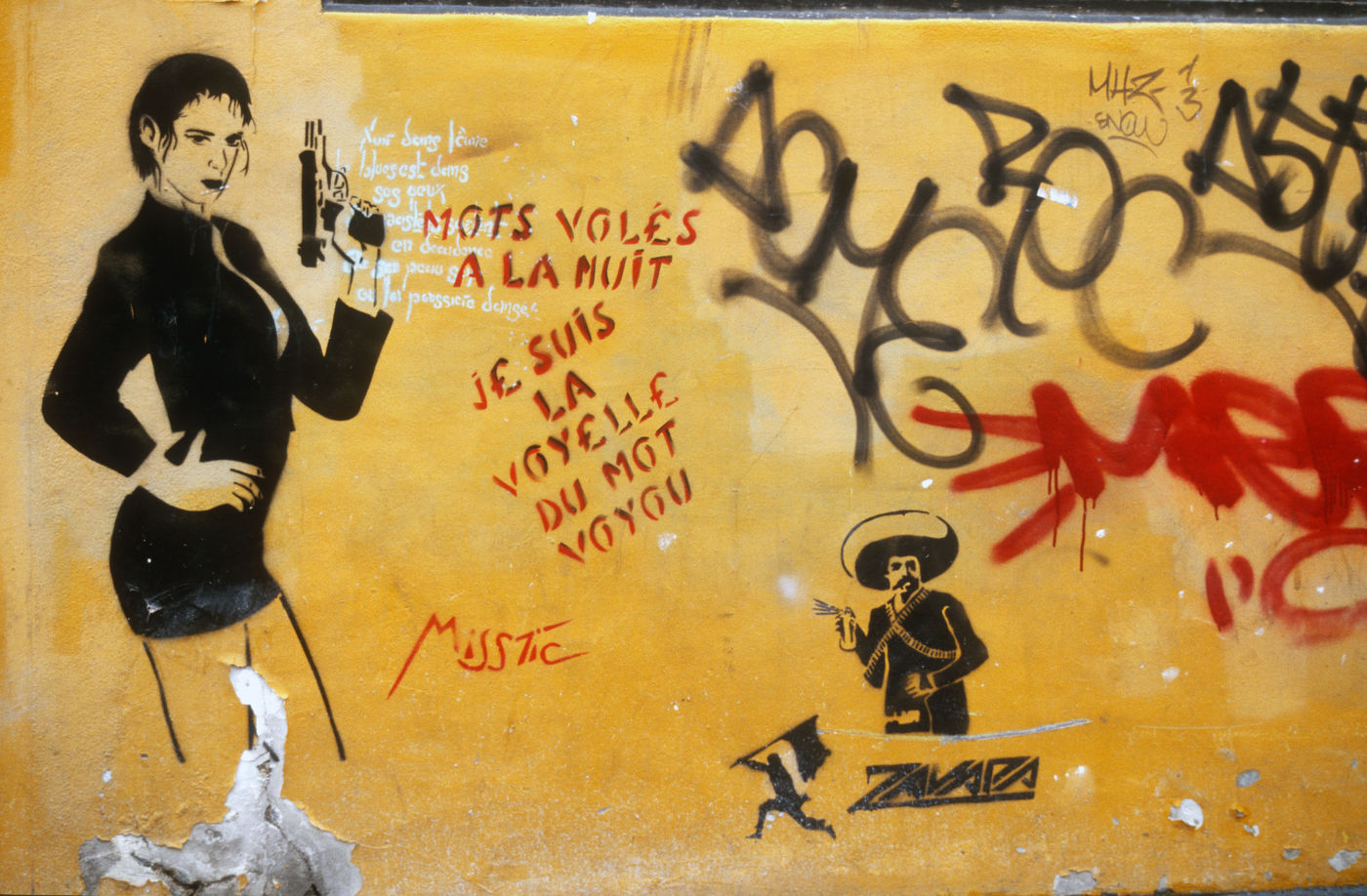 On trouve l'expression artistique dans la rue, à travers des collages, des graffitis et d'autres formes de manifestations anonymes.