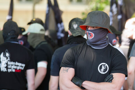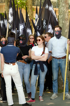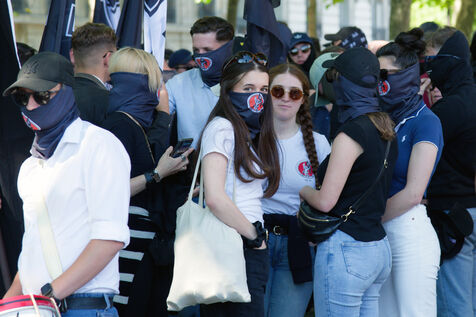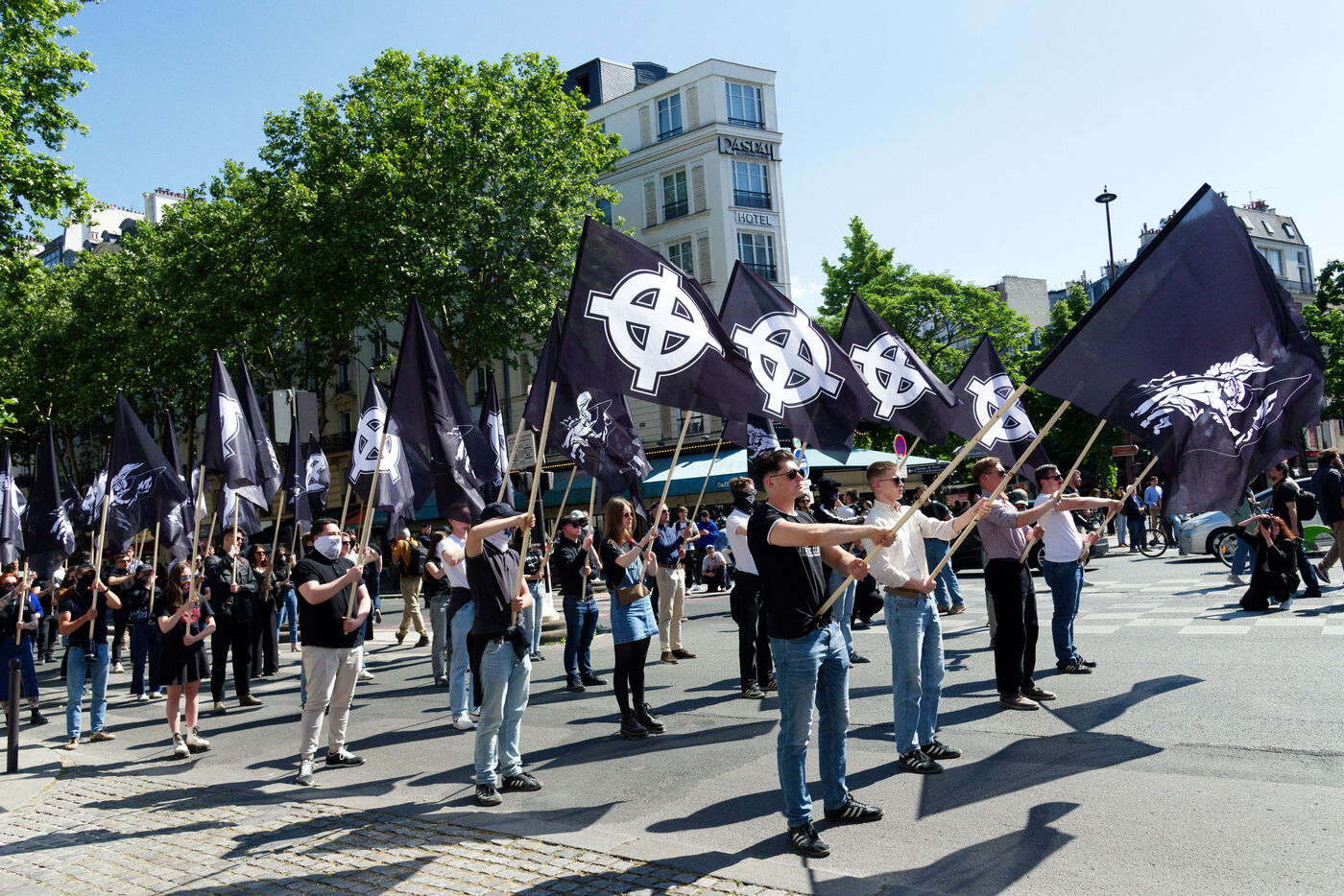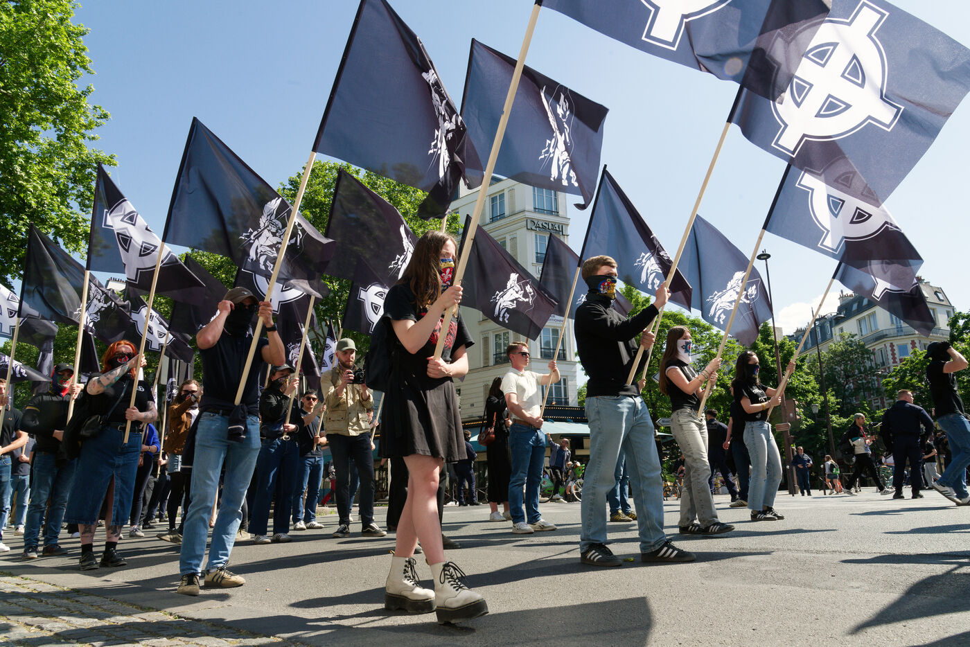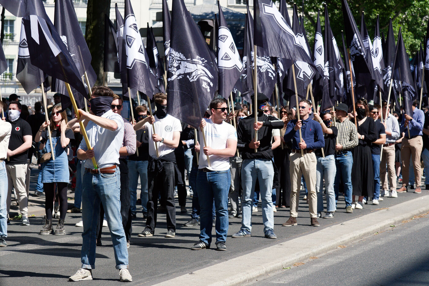 Tout de noir vêtus, au rythme du slogan "Europe, Jeunesse, Révolution", ils sont plusieurs centaines à marcher au pas dans les rues de la capitale a l'appel du "C9M", pour Comité du 9-Mai.