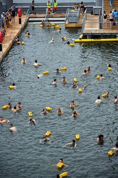 Il s'agit de la première baignade publique autorisée dans le fleuve depuis 1923.