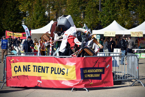 À Paris, un rassemblement pour la journée "ça ne Tient Plus", place Stalingrad.