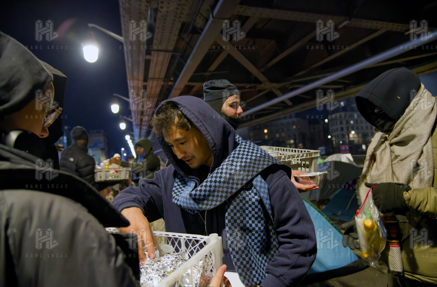 lors dune maraude de nuit aupres de migrants vivant sous des tentes de fortune a Paris France
