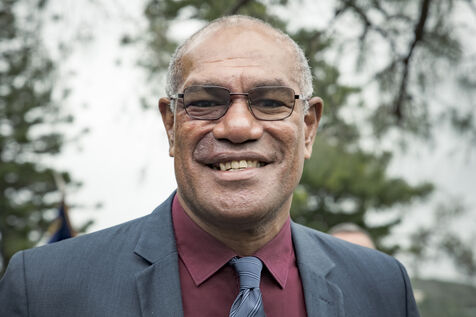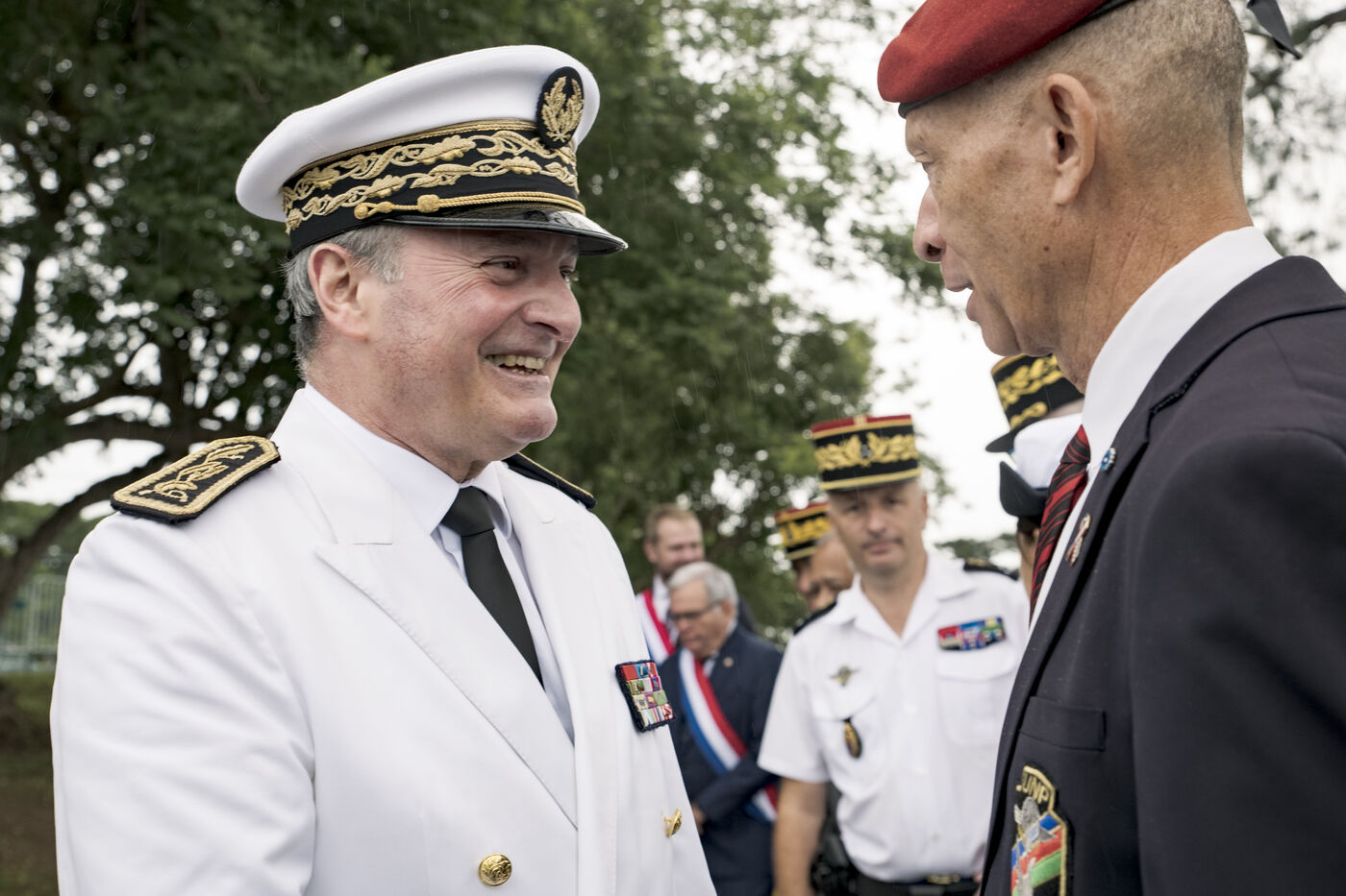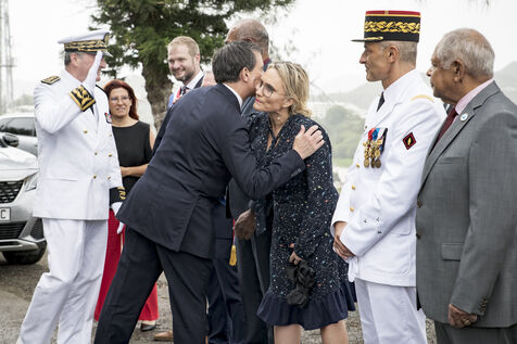 French High Commissioner Jacques Billant, in office for two days in New Caledonia, lays a wreath at the Croix de Lorraine in Noumea, in the presence of French Overseas Minister Manuel Valls, on an official visit to the territory. Caledonian elected representatives were also present.