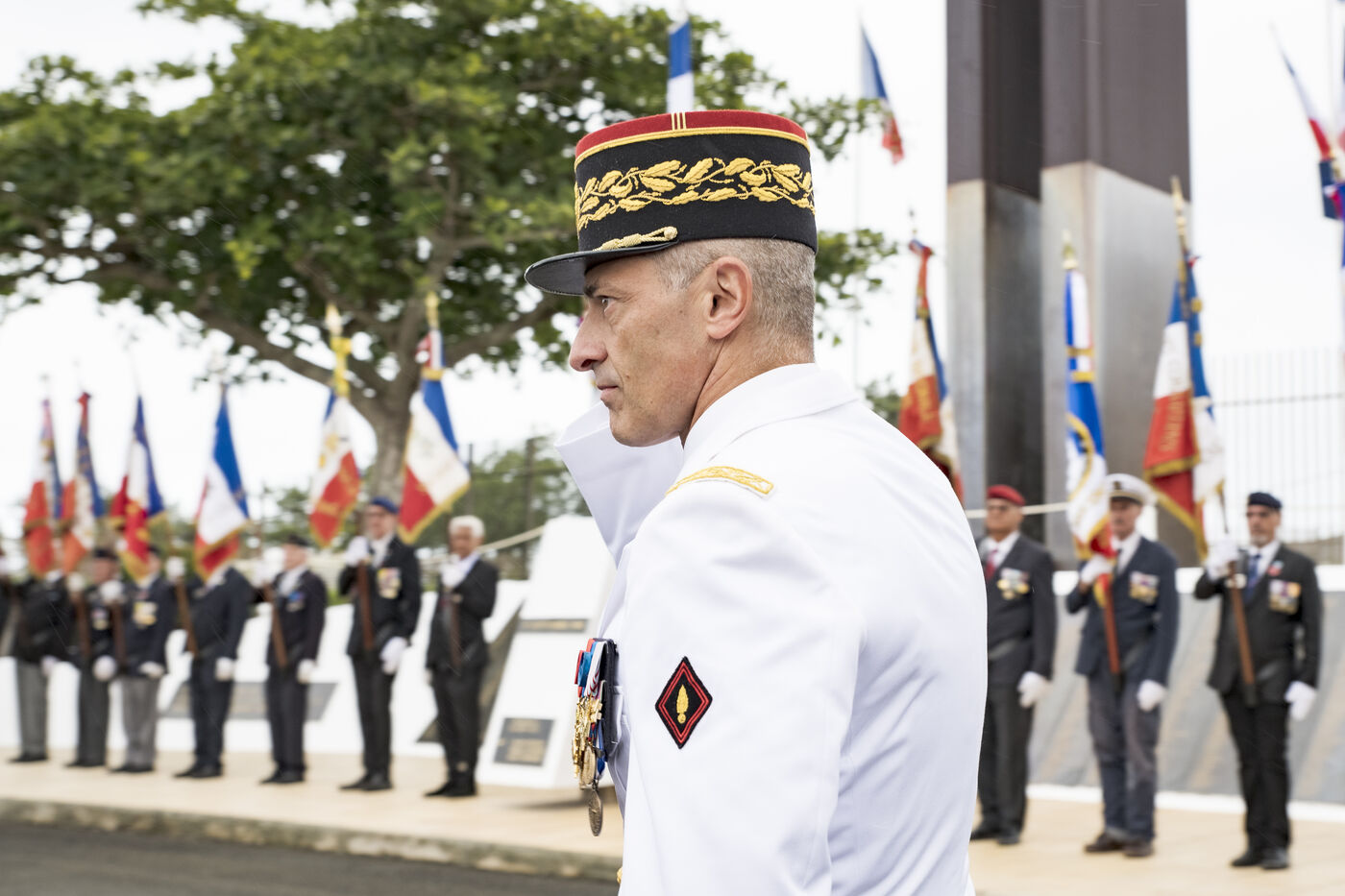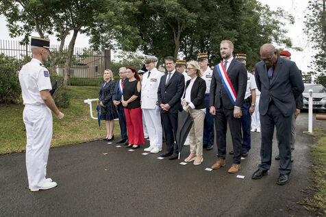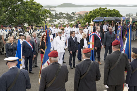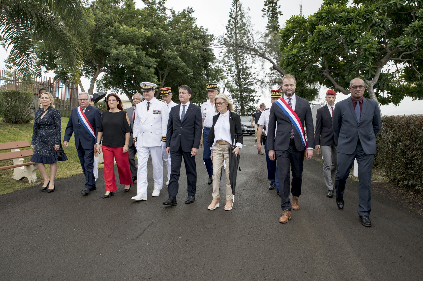 Le Haut-Commissaire de la République Jacques Billant en fonction depuis deux jours en Nouvelle-Calédonie dépose une gerbe à la Croix de Lorraine à Nouméa, en présence du Ministre des Outre-mer Manuel Valls, en visite officielle sur le territoire. Sont présents également les élus calédoniens.